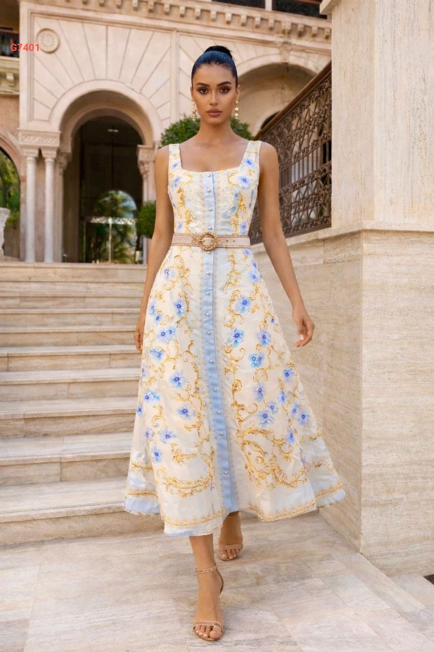 فستان كتان حفر منقوش بأزرار