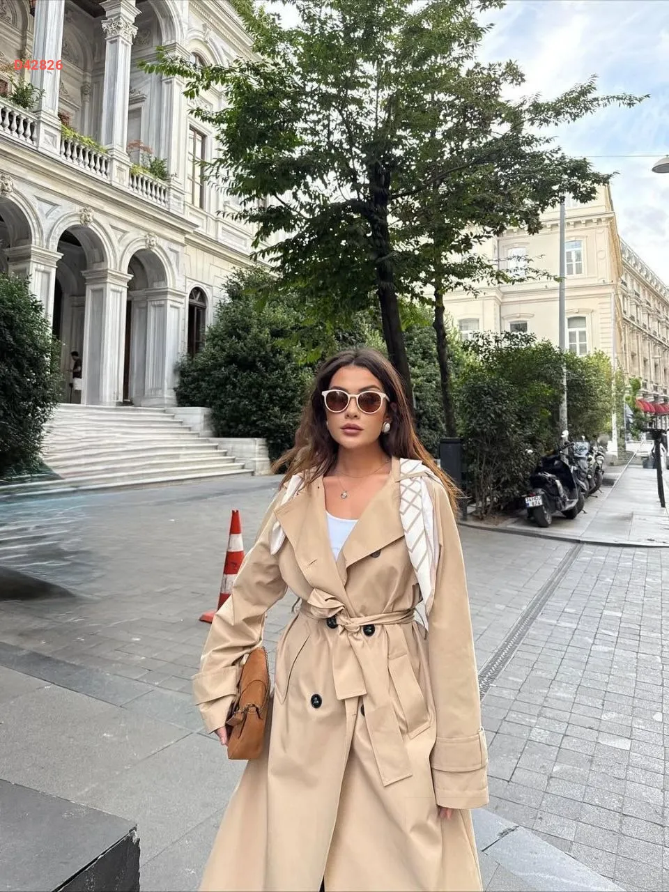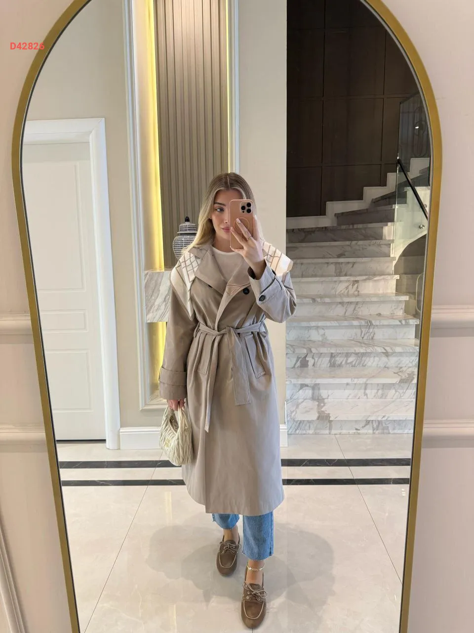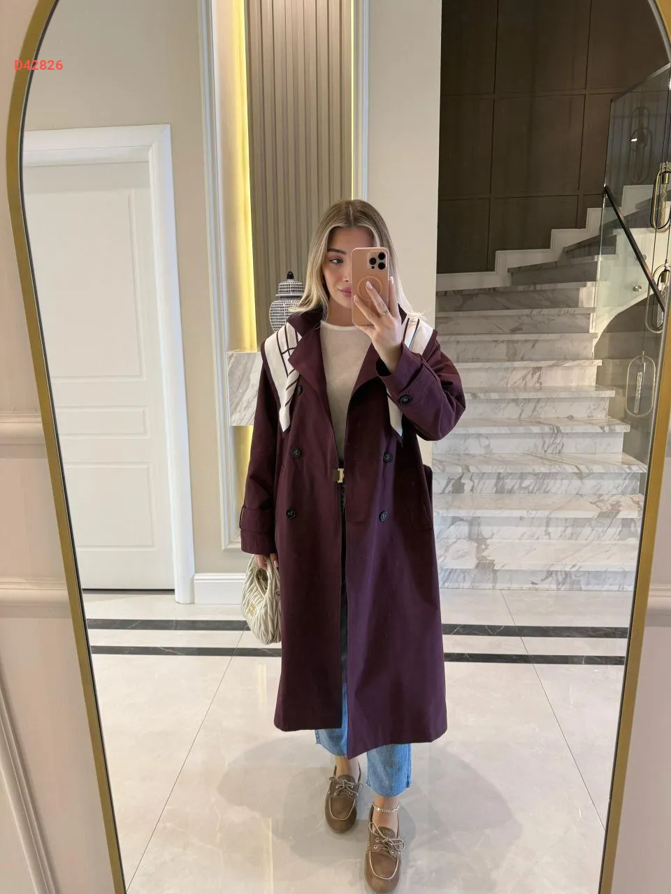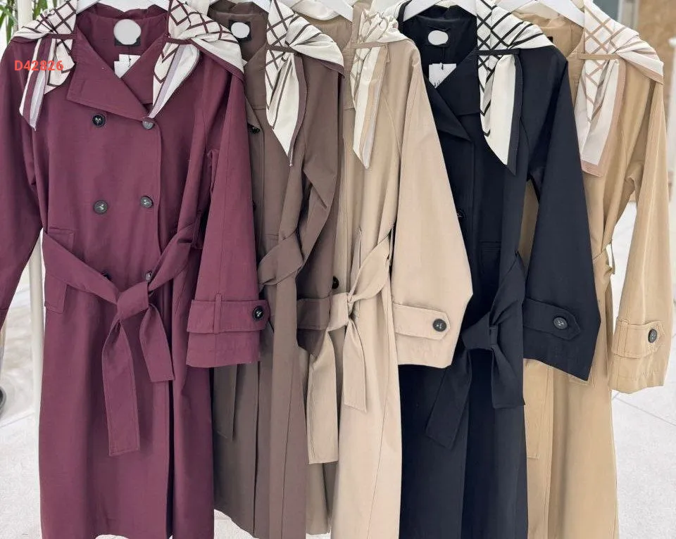 جاكيت كتان مزدوج الصدر بأزرار وسكارف عالرقبة