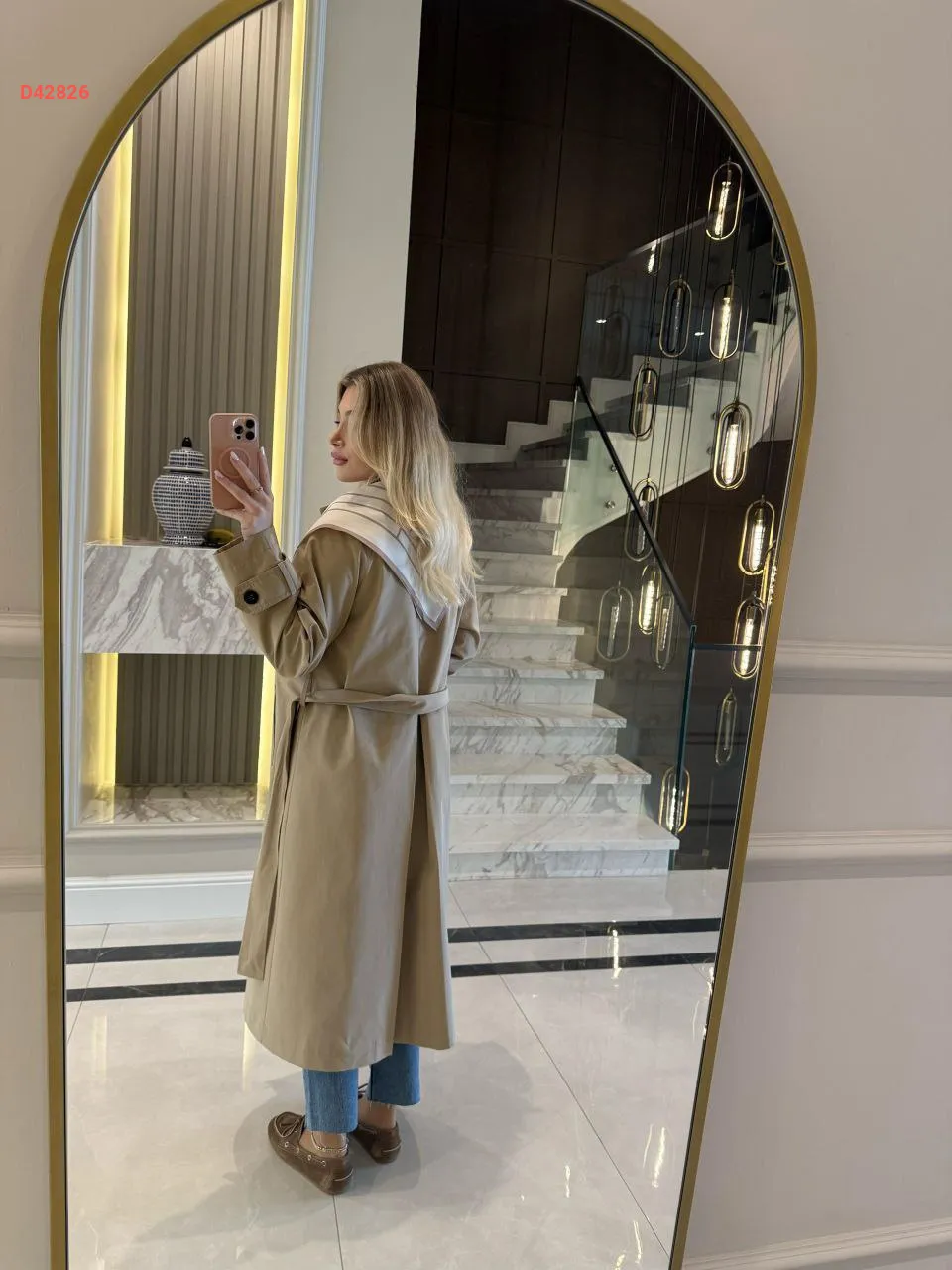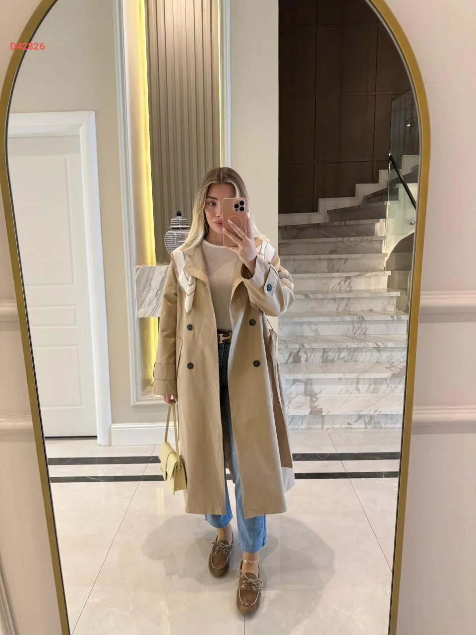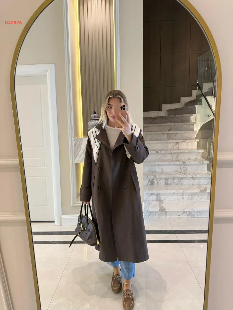 جاكيت كتان مزدوج الصدر بأزرار وسكارف عالرقبة