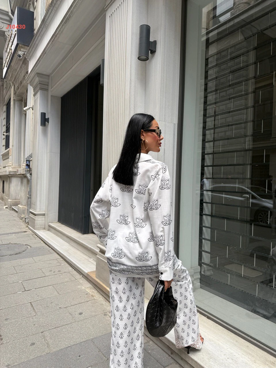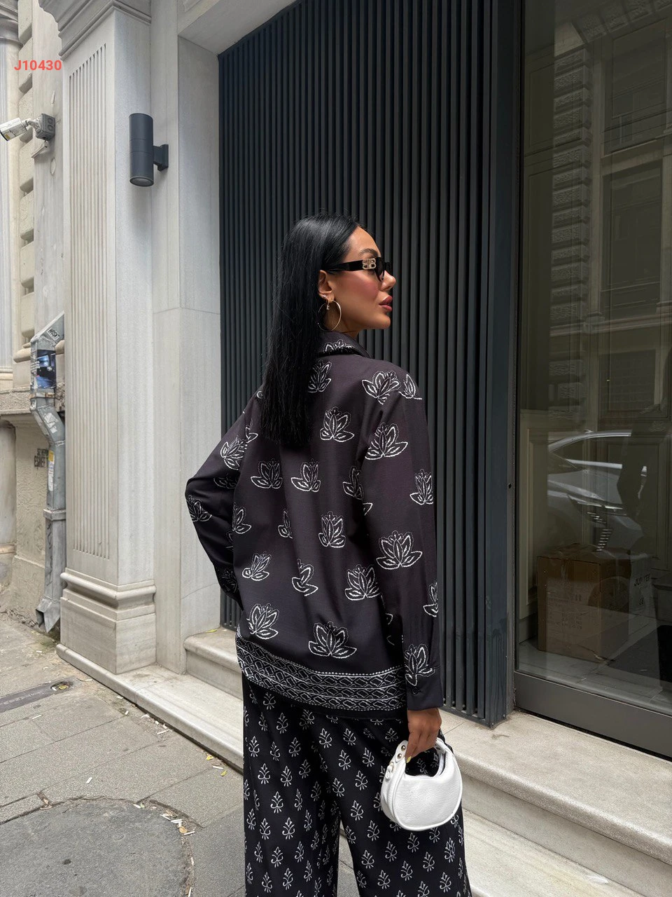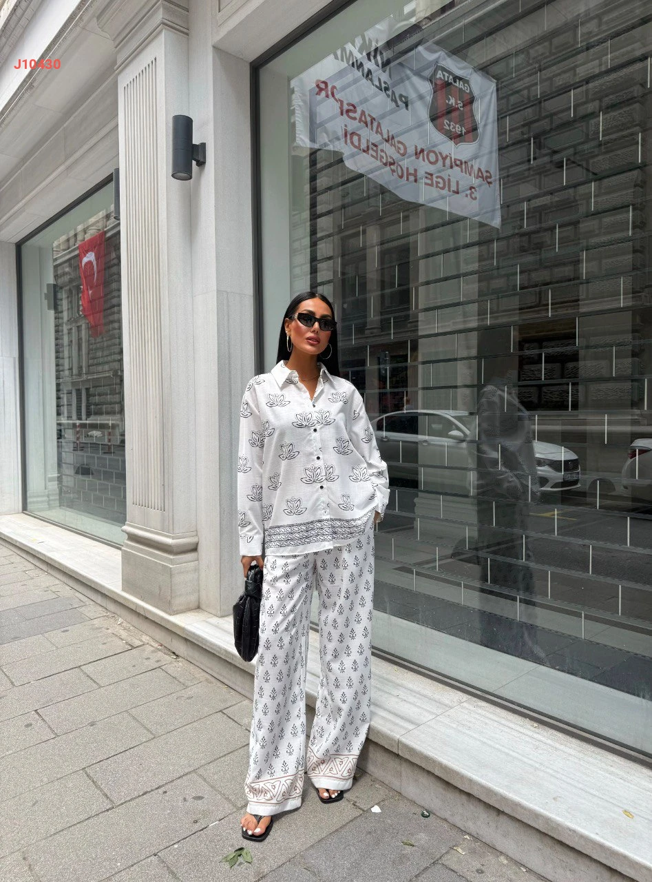 طقم بنطال لنن منقوش مع قميص
