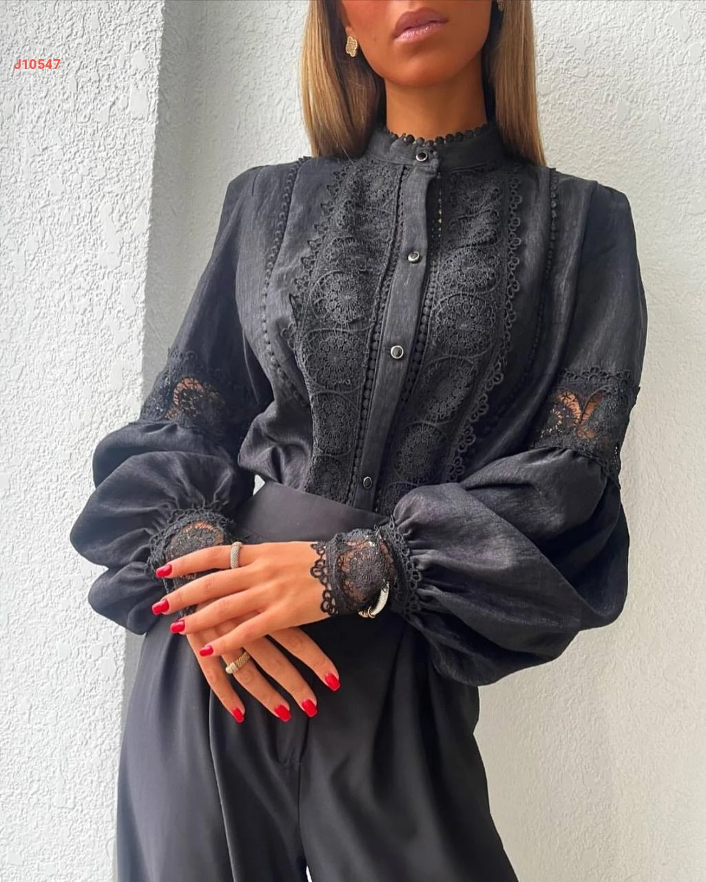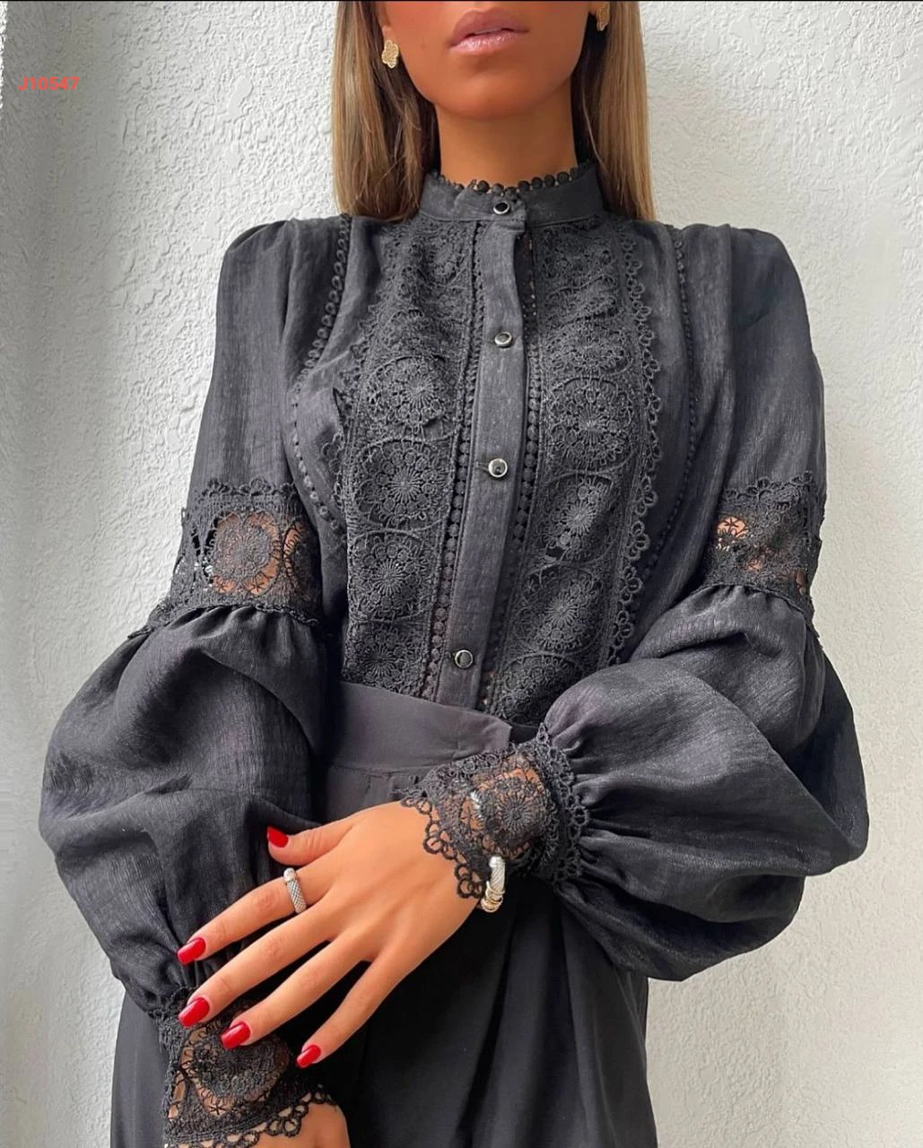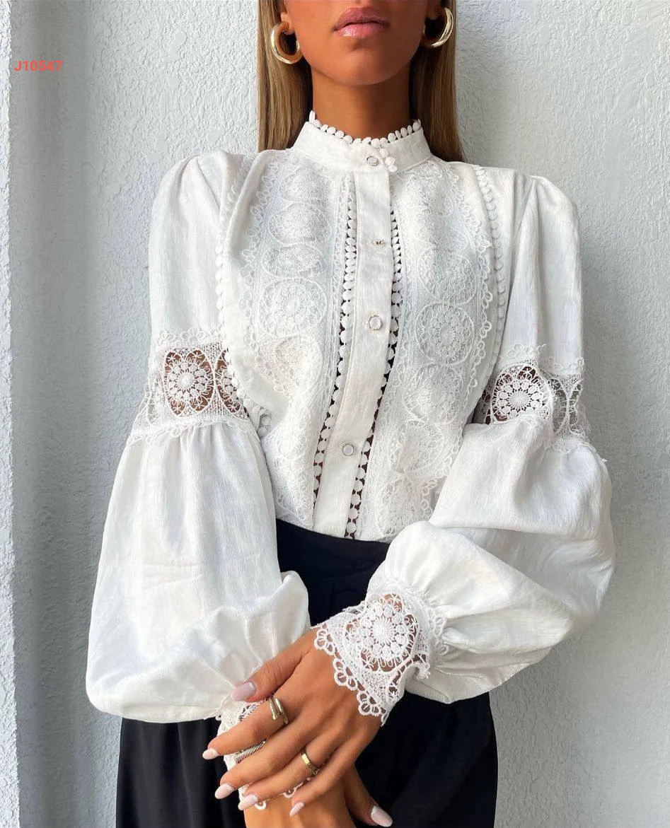 قميص كتان بتفاصيل دانتيل أنيقة