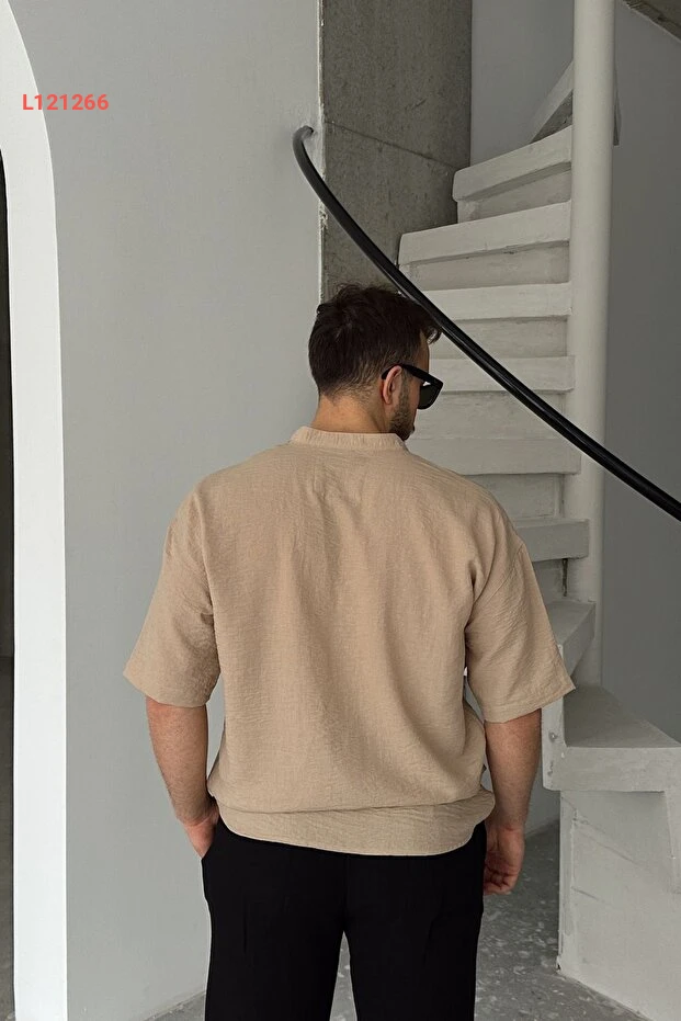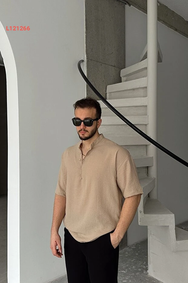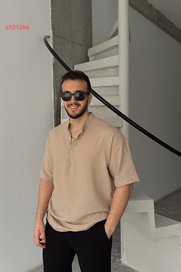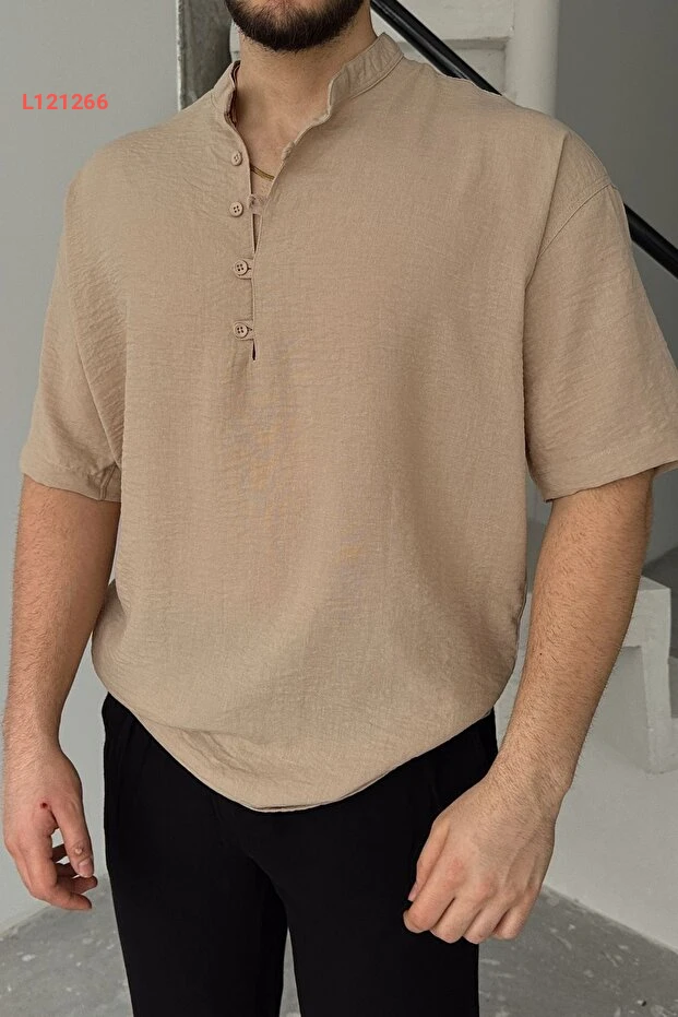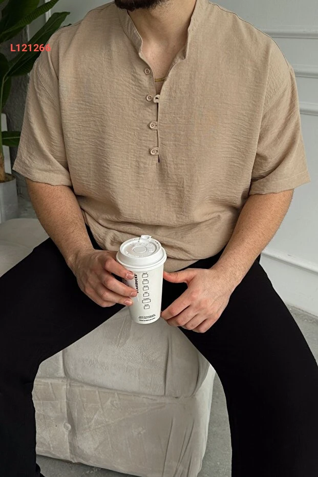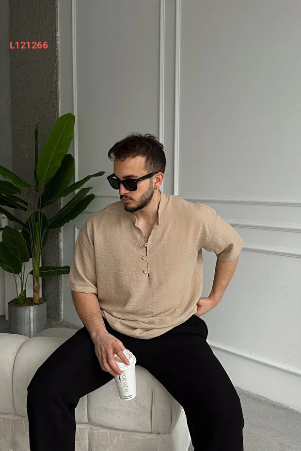 قمصان هاکم قصيرة الأكمام واسعة للرجال بتصميم الكتان من ليفيو فيري سورو
