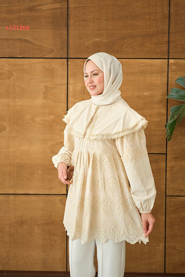 استمتعي بأناقتك اليومية مع قميص LOCCO ذو الياقة المتدلية والدانتيل الرائع. تصميمه الفريد بلون الكريم يمنحك مظهراً أنثوياً مميزاً، بينما يضمن القماش الناعم راحة طوال اليوم. اختاري هذا القميص لإضافة لمسة من الرقي والأنوثة إلى إطلالتك!