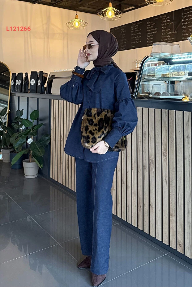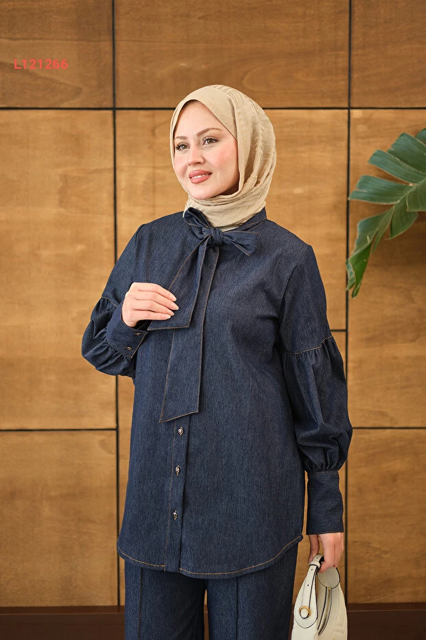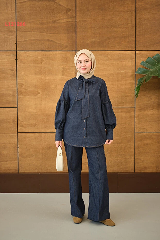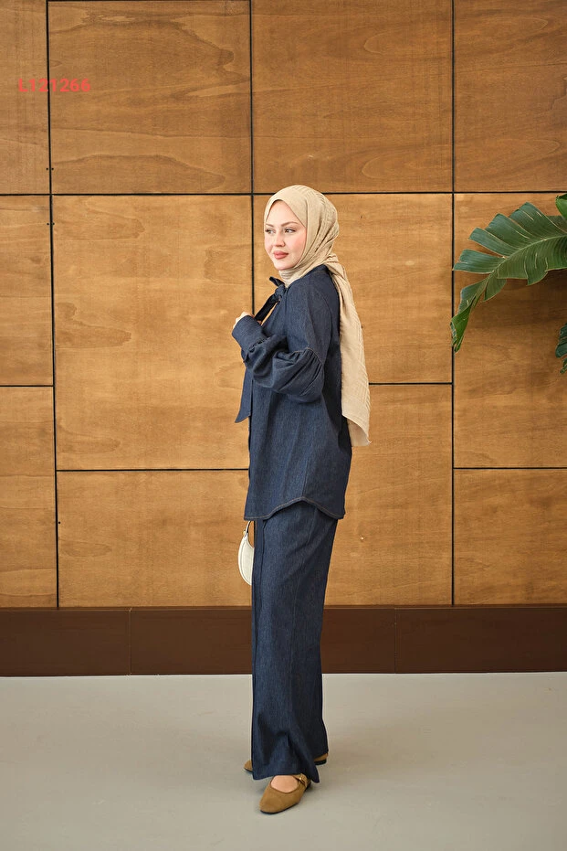 استمتعي بالأناقة والراحة مع طقم LOCCO المصنوع من قماش الجينز الأنيق باللون الازرق الداكن. يتميز بتصميمه الفريد مع تفاصيل الأزرار عند الياقة وجزء الأكمام المربوط، مما يضفي لمسة عصرية ومتجددة على إطلالتك. إنه الخيار المثالي لمناسباتك اليومية، حيث يجمع بين الأناقة والعملية في قطعة واحدة!