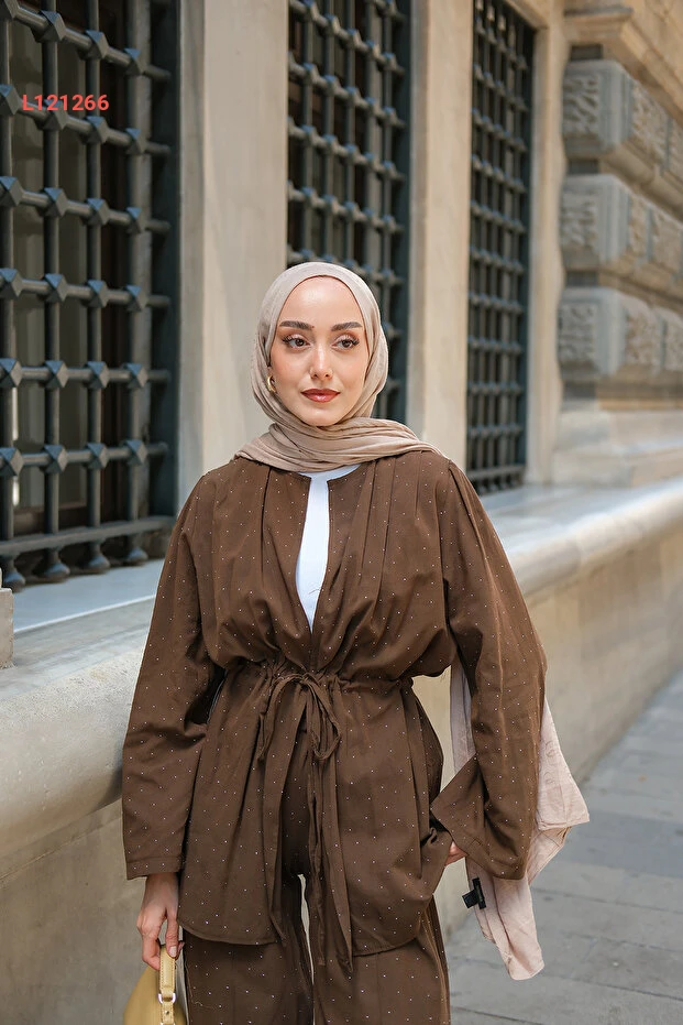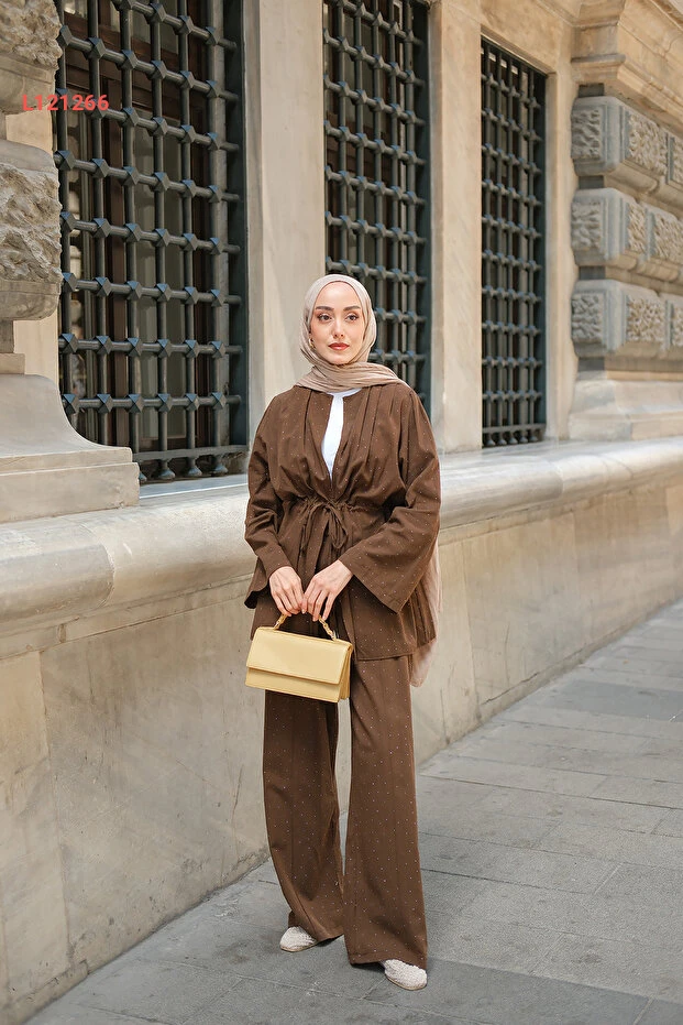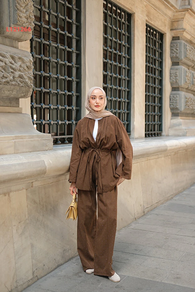 استمتعي بالأناقة العصرية مع طقم "LOCCO" النسائي المكون من قطعتين باللون البني، المزخرف بتفاصيل راقية من الأحجار. تصميمه المتقن يوفر لكِ راحة غير مسبوقة، بينما يضفي لمسة فريدة على مظهركِ، مما يجعله الخيار المثالي للذهاب إلى العمل أو لقضاء الوقت مع الأصدقاء. ارتدي هذا الطقم لتحصلي على إطلالة تجمع بين الأناقة والراحة بكل سهولة!