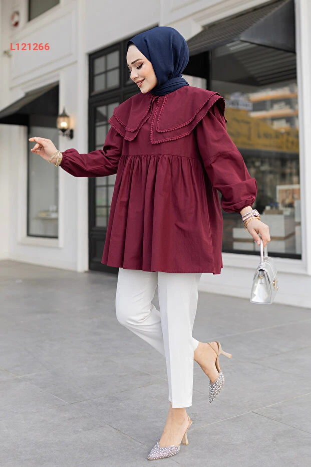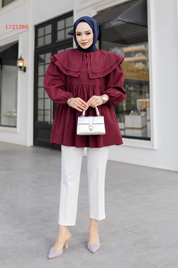 ارتقي بأناقتك مع قميص LOCCO ذو الياقة الثنائية والتفاصيل الجذابة من الدانتيل بلون البوردو الأنيق. مصمم خصيصًا لإبراز أنوثتك، يوفر لك الراحة والتميز في كل مناسبة. اجعليه الخيار المثالي لإضافة لمسة من الفخامة إلى ملابسك اليومية!