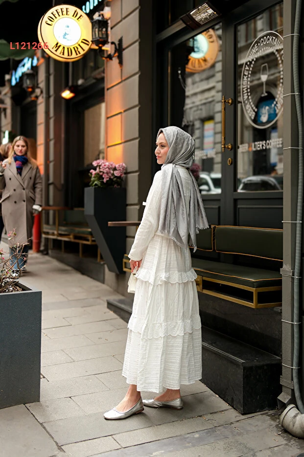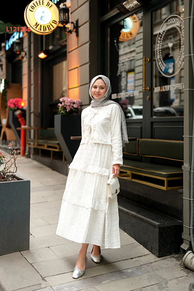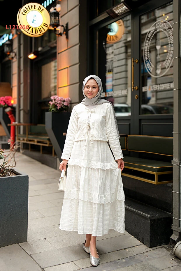 طقم نسائي مزدوج بتفاصيل ربطة أمامية باللون الأبيض من لوكو
