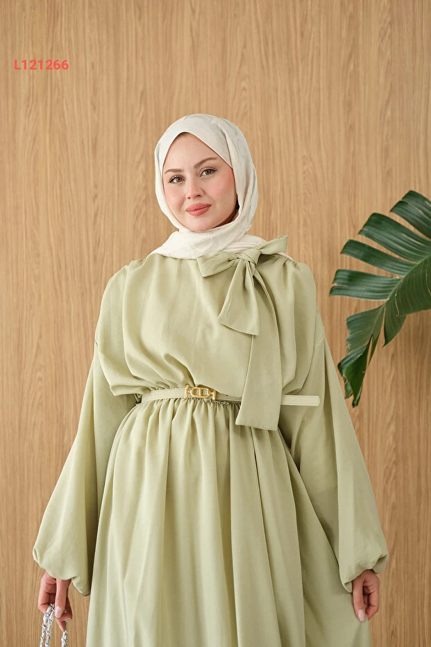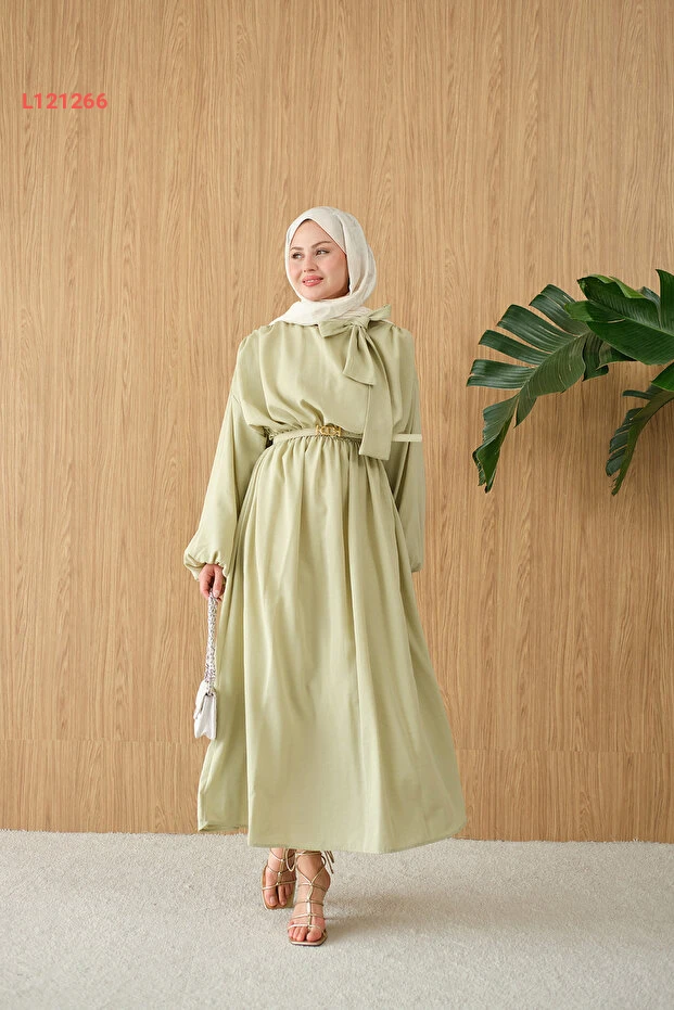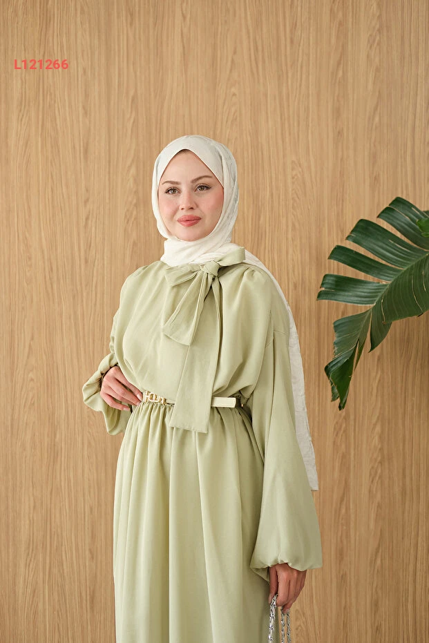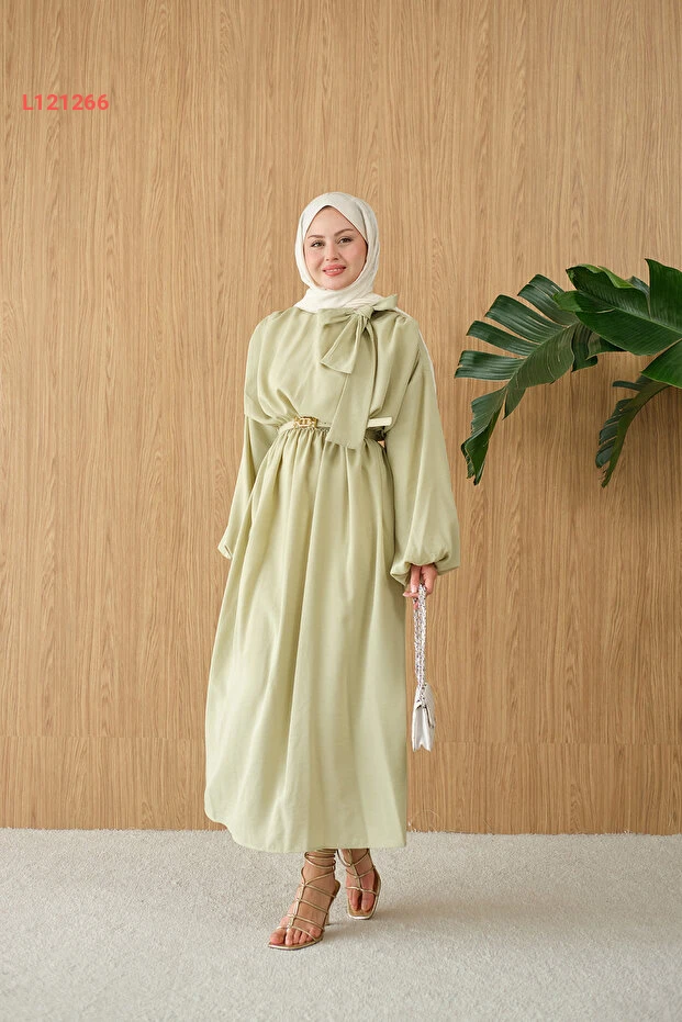 فستان برباط عند العنق وجيب من لوكو - لون أخضر مائي للنساء
