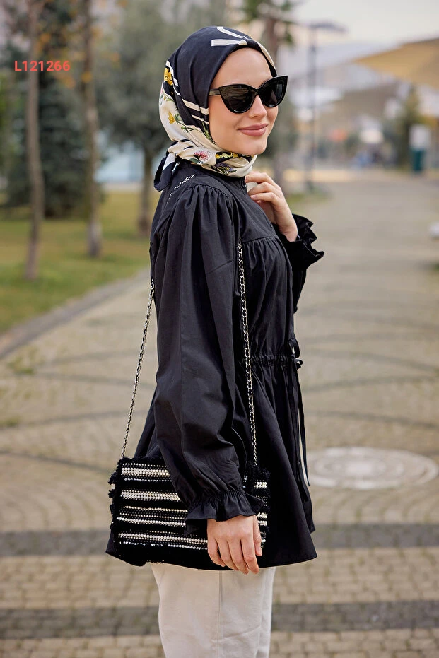 استمتعي بالأناقة العصرية مع قميص LOCCO النسائي بلون الأسود، الذي يتميز بتفاصيل البروز القابلة للتعديل وأكمام الكتف المنفوخة. هذا القميص ليس فقط قطعة أساسية في خزانة ملابسك، بل يضفي لمسة من الجرأة والفخامة على إطلالتك، مما يجعله الخيار المثالي لأي مناسبة.