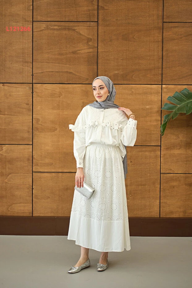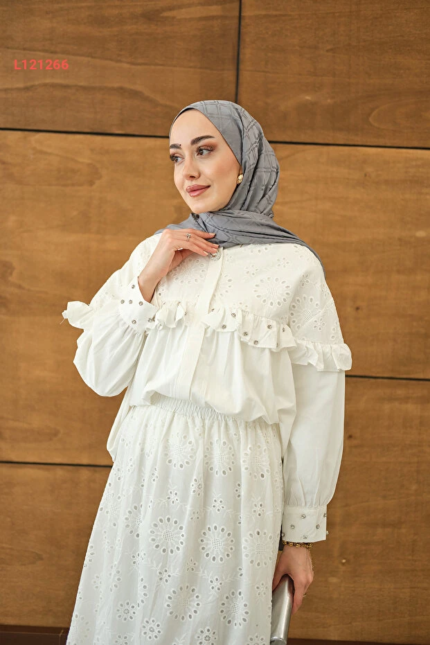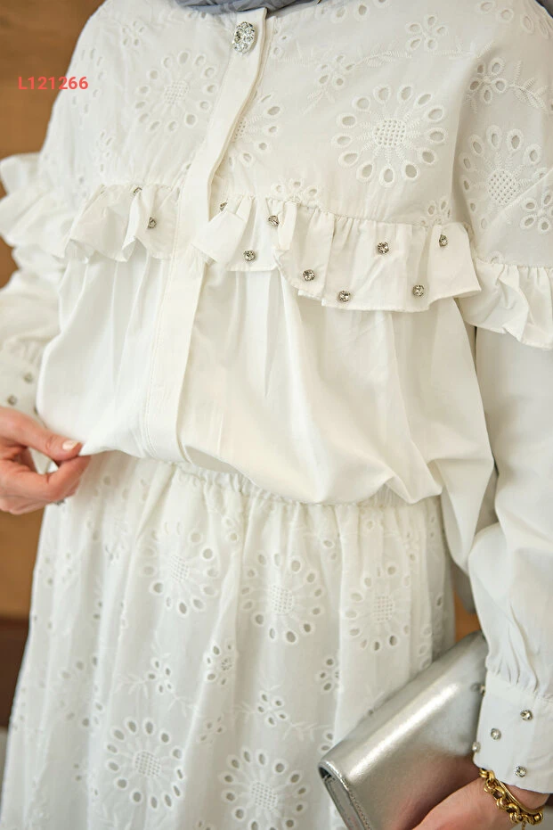 اكتشفي أناقتك مع طقم LOCCO النسائي المزود بتفاصيل فخمة من الفُرُفات والخرز اللامع. مصنوع من خامات عالية الجودة بلون أبيض ناصع، يمنحك مظهراً متألقاً يناسب جميع المناسبات. تم تصميمه ليجمع بين الراحة والأناقة، مما يجعلك محط أنظار الجميع أينما ذهبتِ.