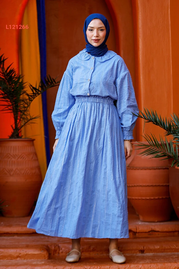 استمتعي بالأناقة والراحة مع طقم LOCCO المكون من بلوزة مزينة بخطوط أنيقة وسروال متناسق باللون الأزرق الجذاب. يتميز هذا الطقم بتصميمه العصري الذي يناسب كافة المناسبات، مما يجعلكِ تبدين مميزة ومشرقة في كل لحظة. اجعلي من كل إطلالة فرحة مع لمسة عصرية لا تضاهى!