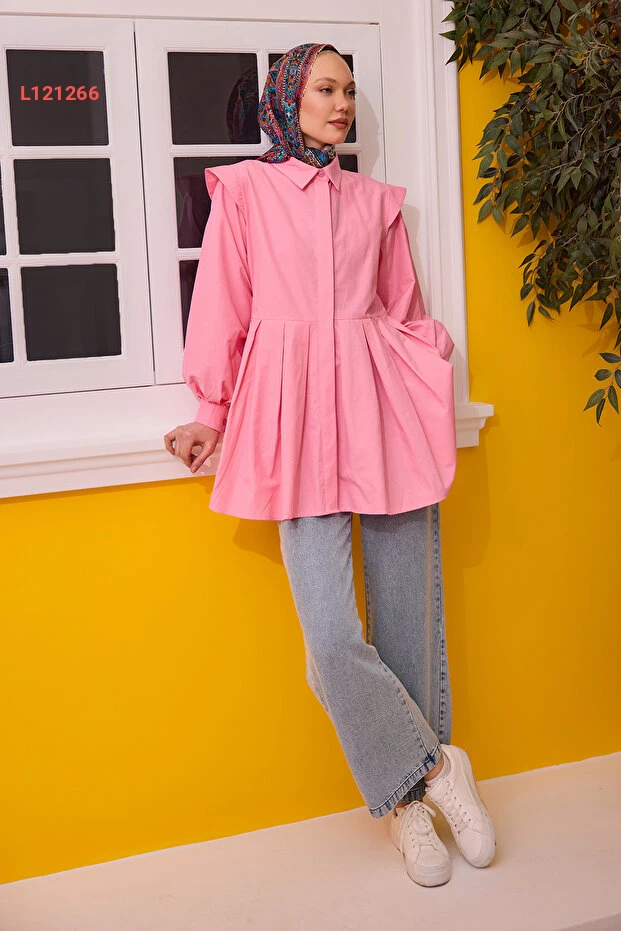 احصلي على إطلالة أنيقة وجذابة مع تنورة لوكو بيوسفها الوردية المميزة. تصميمها المزود بالتفاصيل المليئة بالثنيات يضيف لمسة من الأنوثة والجاذبية، بينما يوفر القماش الخفيف الراحة خلال جميع مناسباتك. ارتديها مع بلوزة بسيطة لتتألقي بإطلالة رائعة في كل المناسبات.
