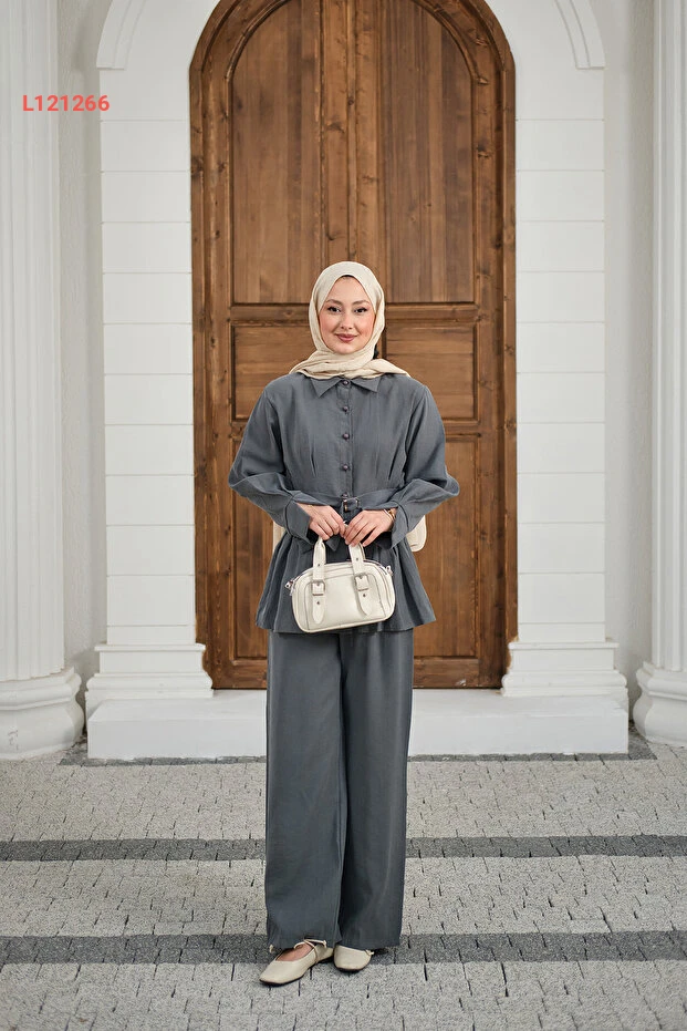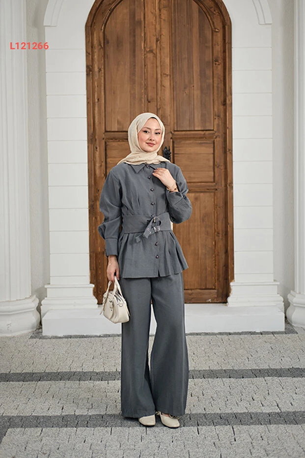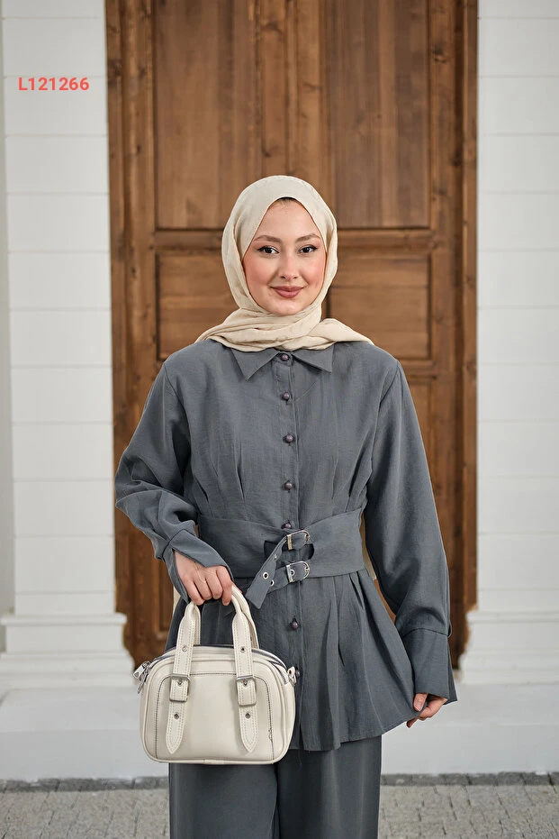استمتعي بأناقة فريدة مع طقم LOCCO المكون من قميص بياقة عصرية بتفاصيل مميزة عند الخصر، مصمم بلون رمادي أنيق. يضمن لك هذا الطقم راحة استثنائية، مع حزامين يزيدان من تميزه، مما يجعله اختيارًا مثاليًا لمناسباتك اليومية والمهنية. تألقي بأناقتك وأبرزي أسلوبك الفريد!