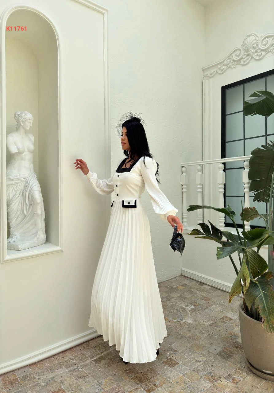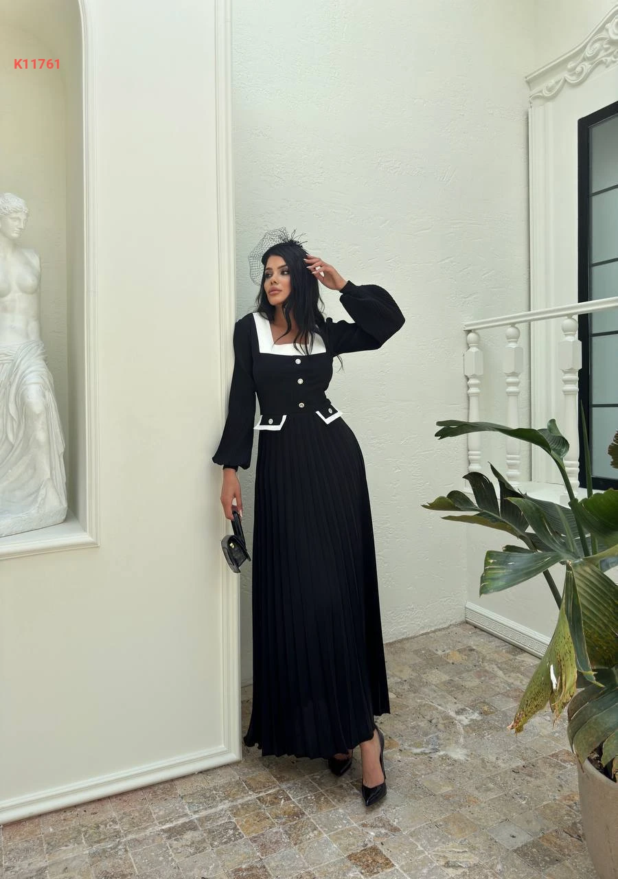 فستان طويل مكسر بياقة مربعة