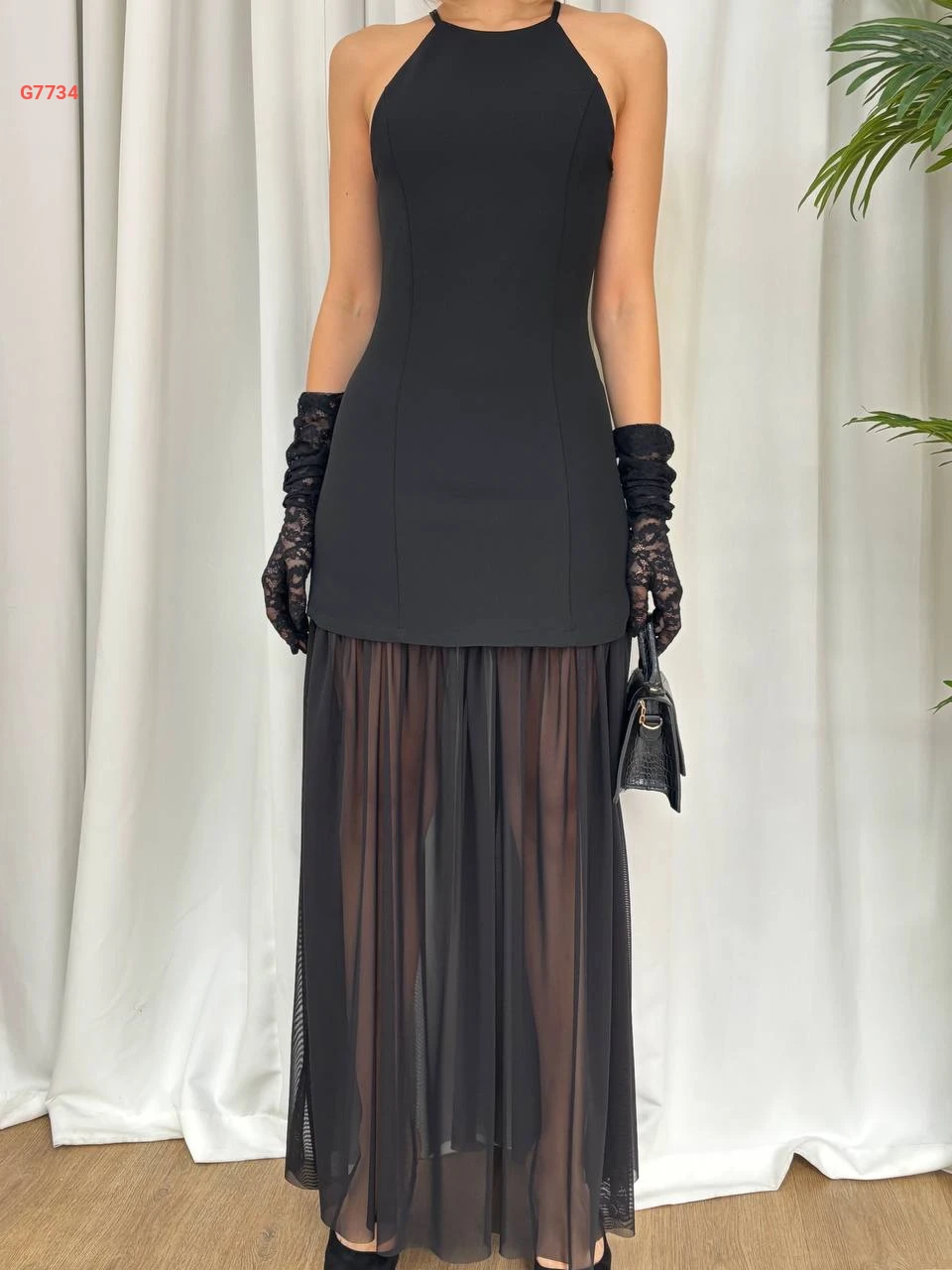 فستان حفر طويل مع شيفون