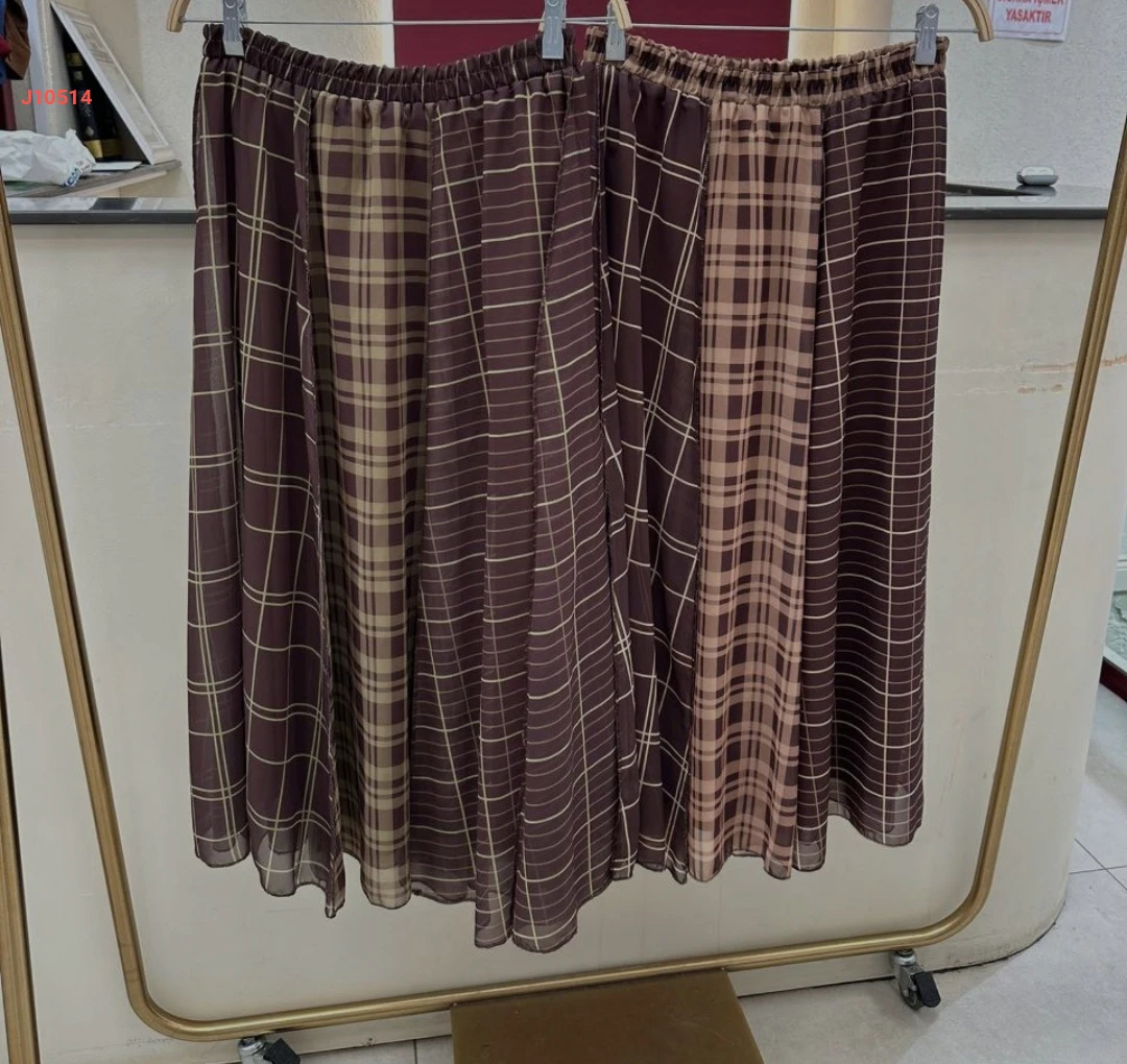 تنورة طويلة كاروهات بخصر مطاطي