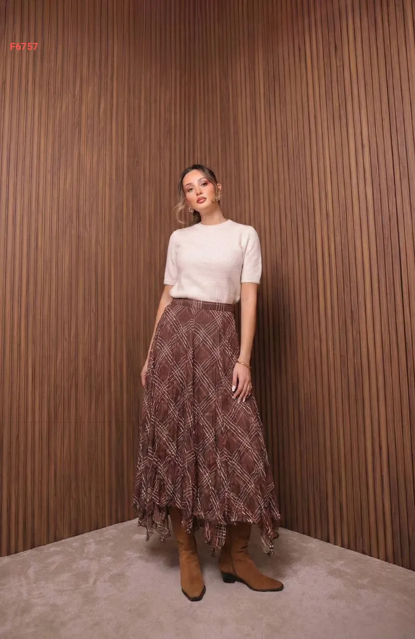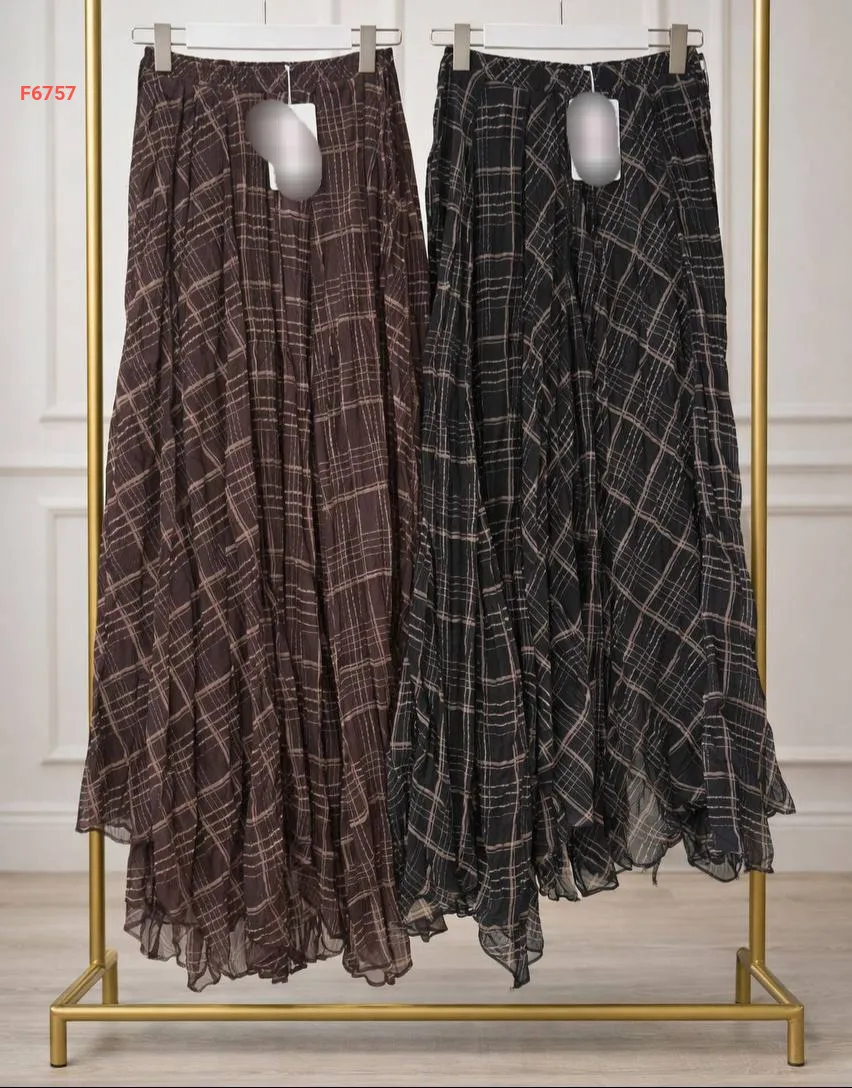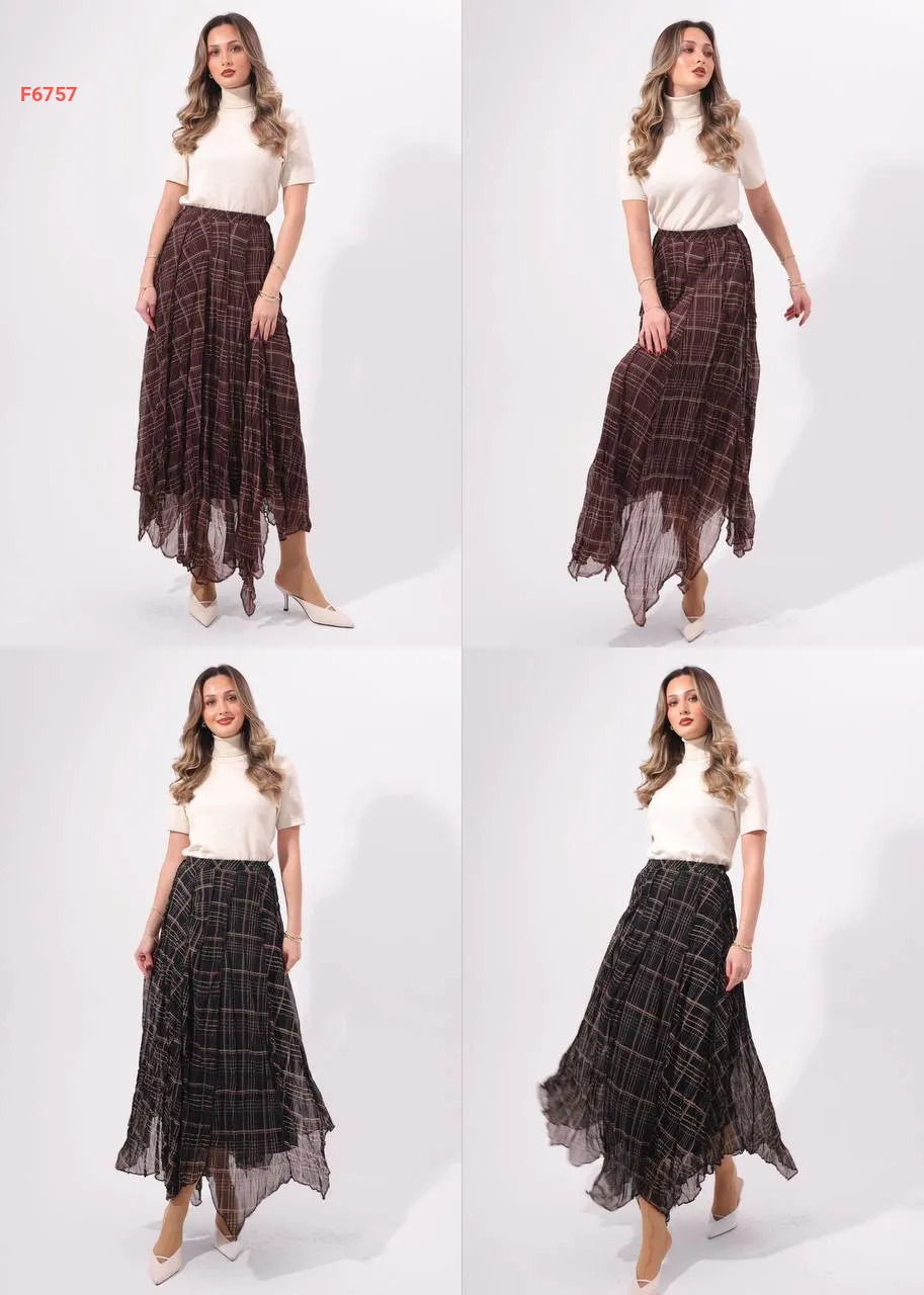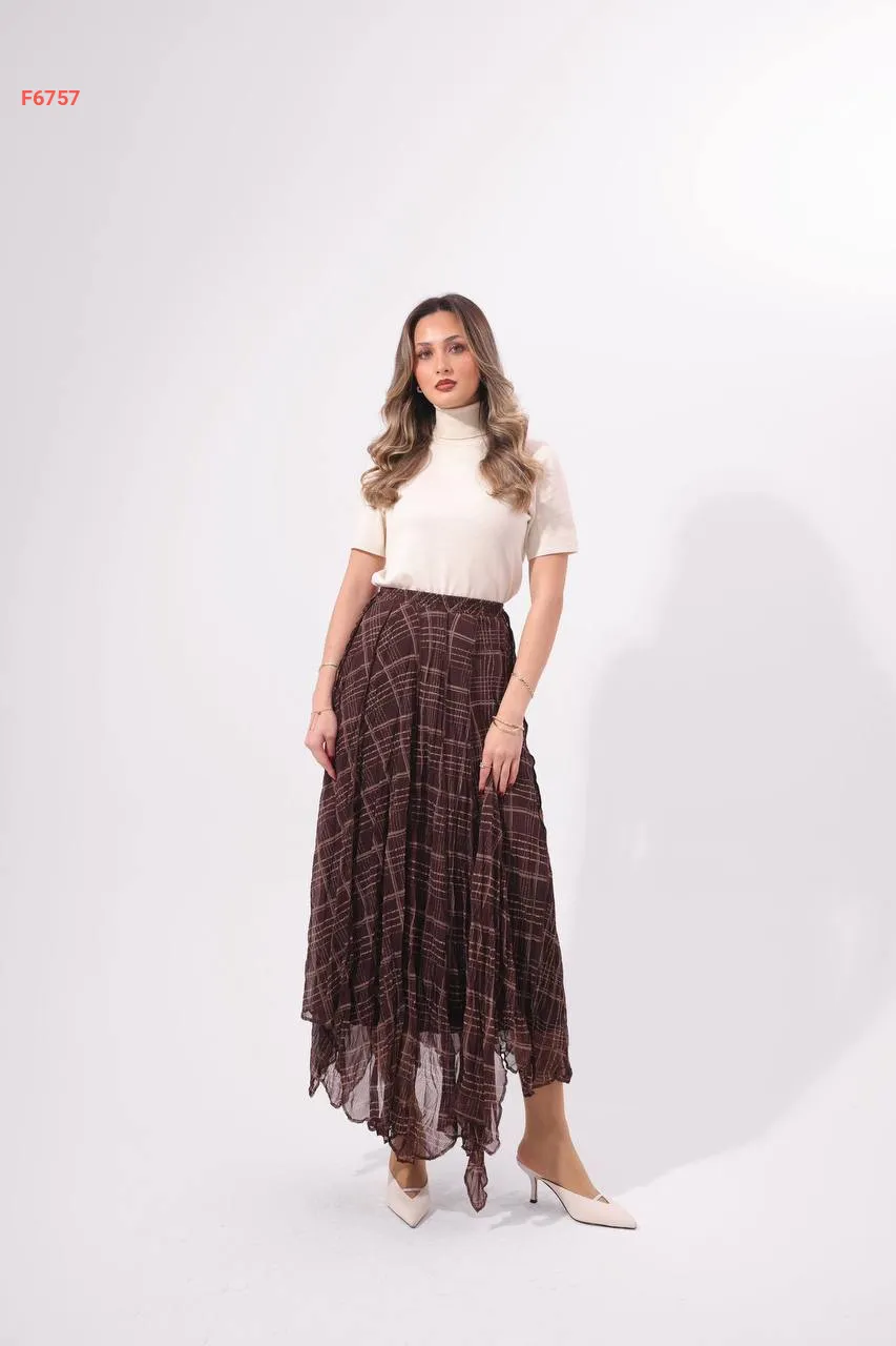 تنورة طويلة شيفون كارو مبطنة