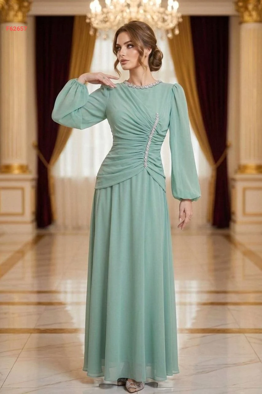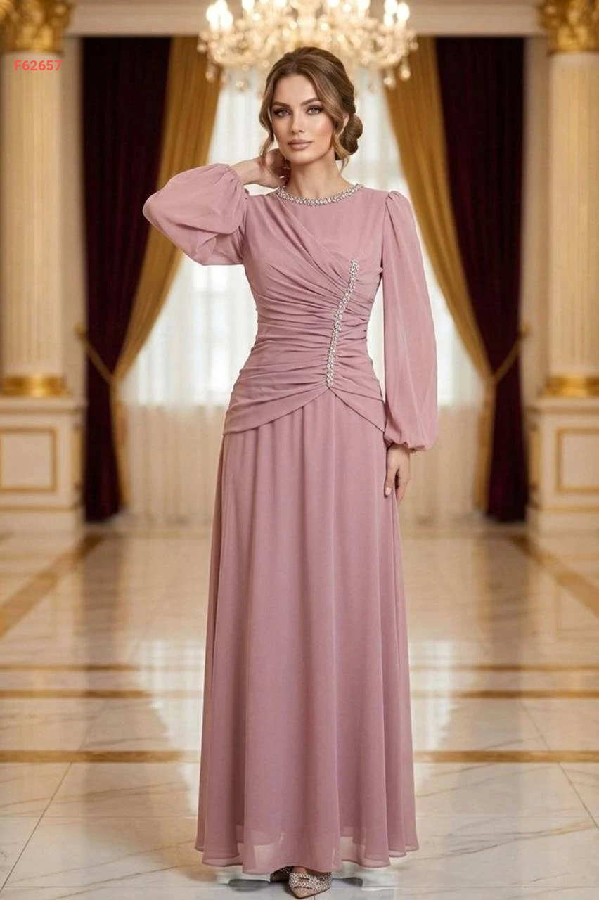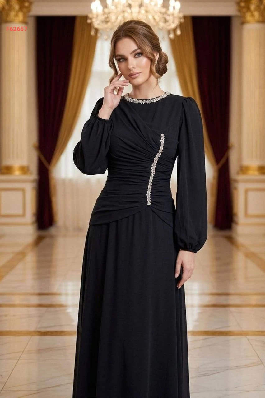 فستان طويل شيفون مبطن مع أحجار