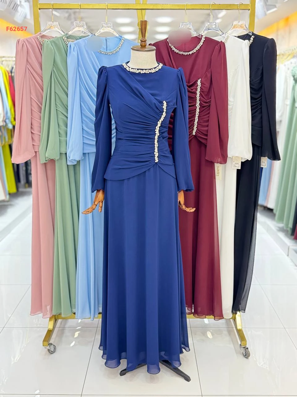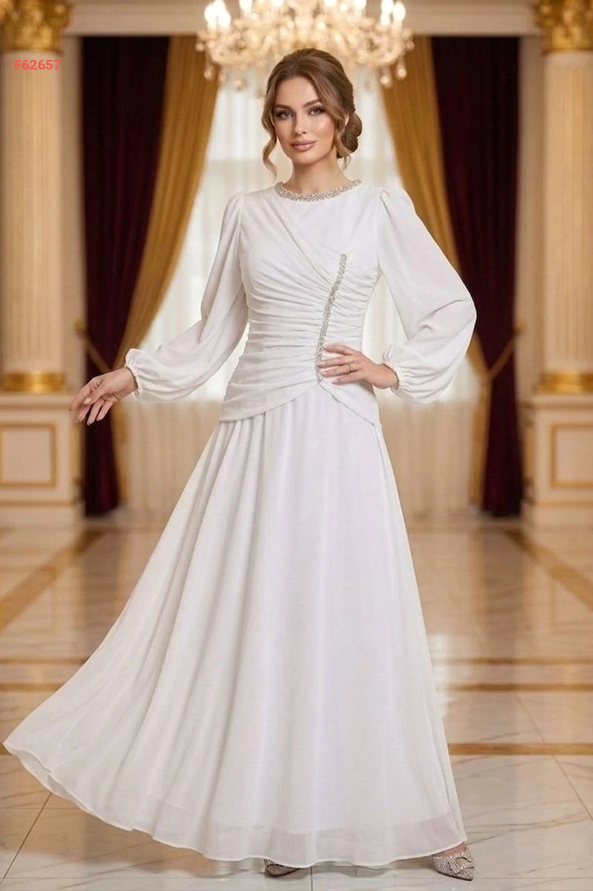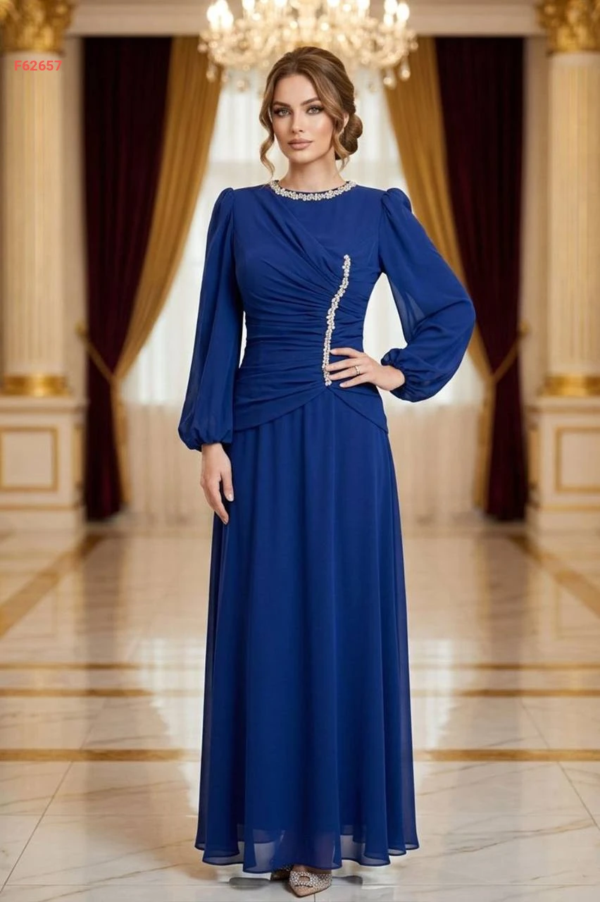فستان طويل شيفون مبطن مع أحجار