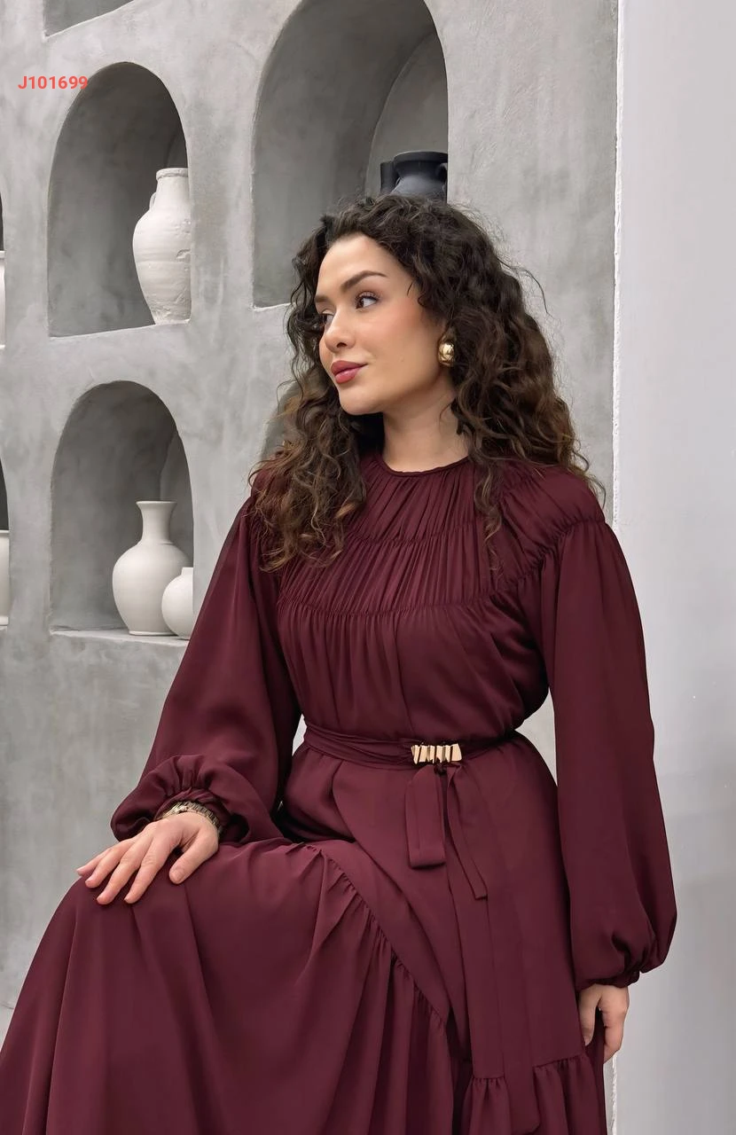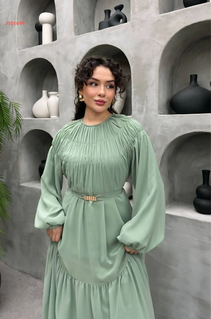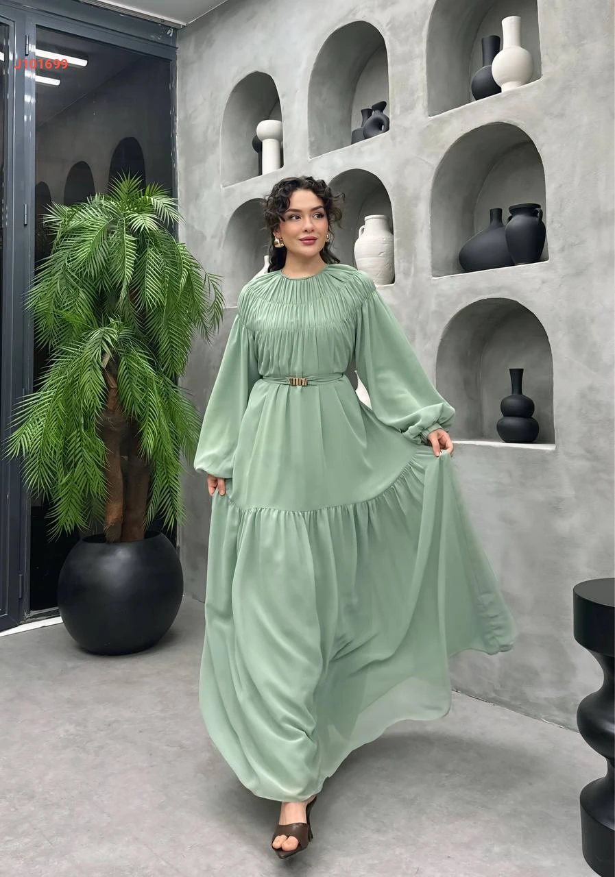 فستان طويل شيفون مع حزام