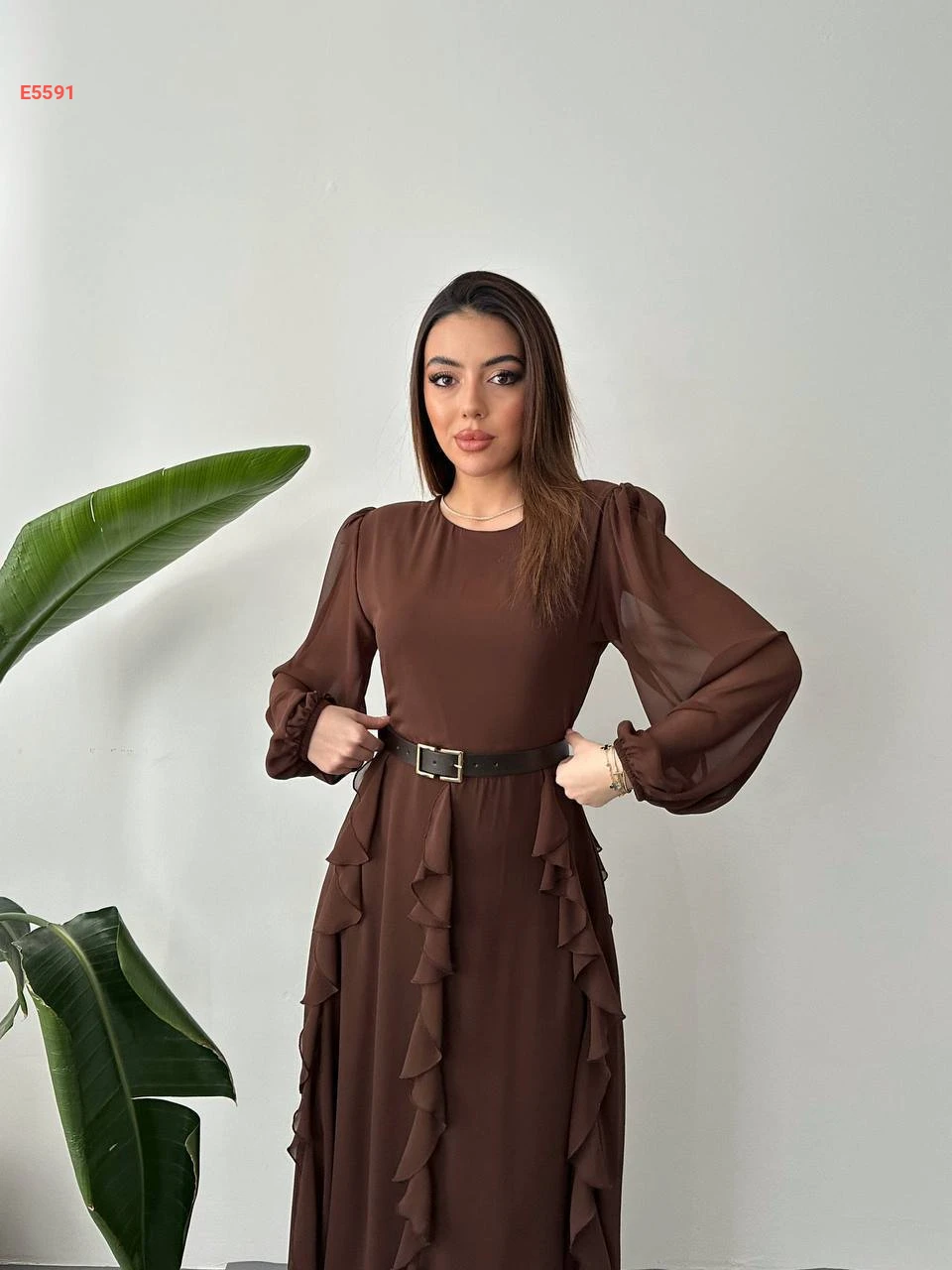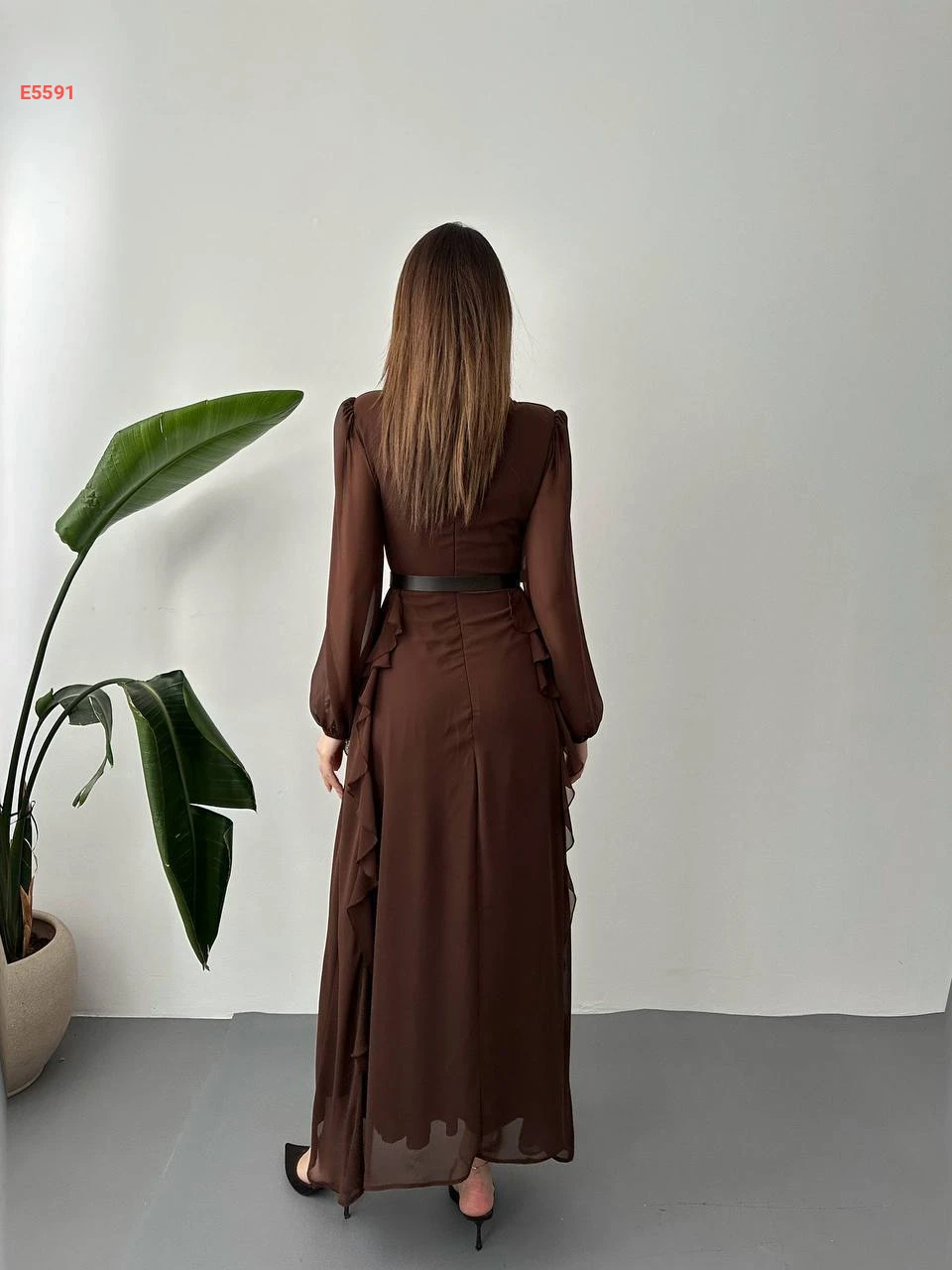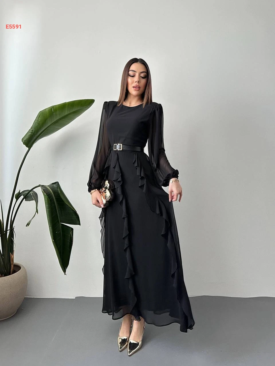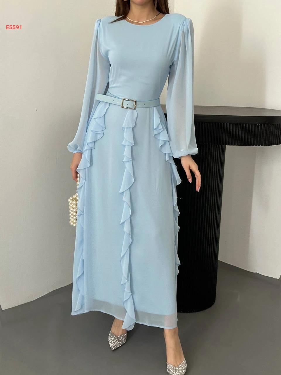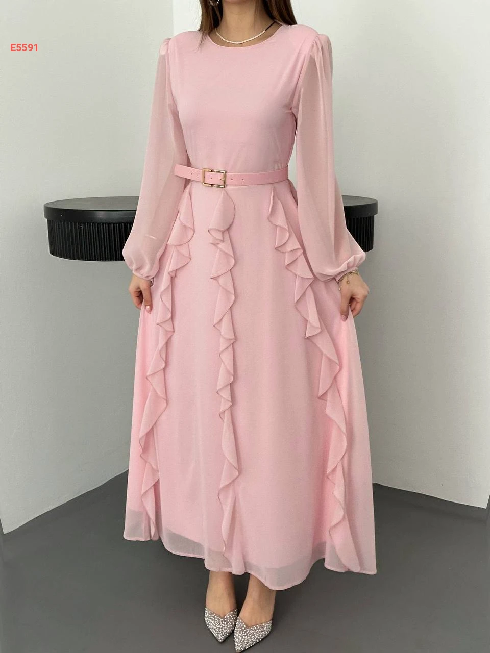 فستان طويل شيفون مع حزام