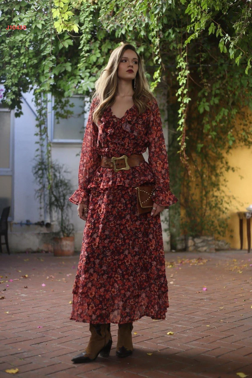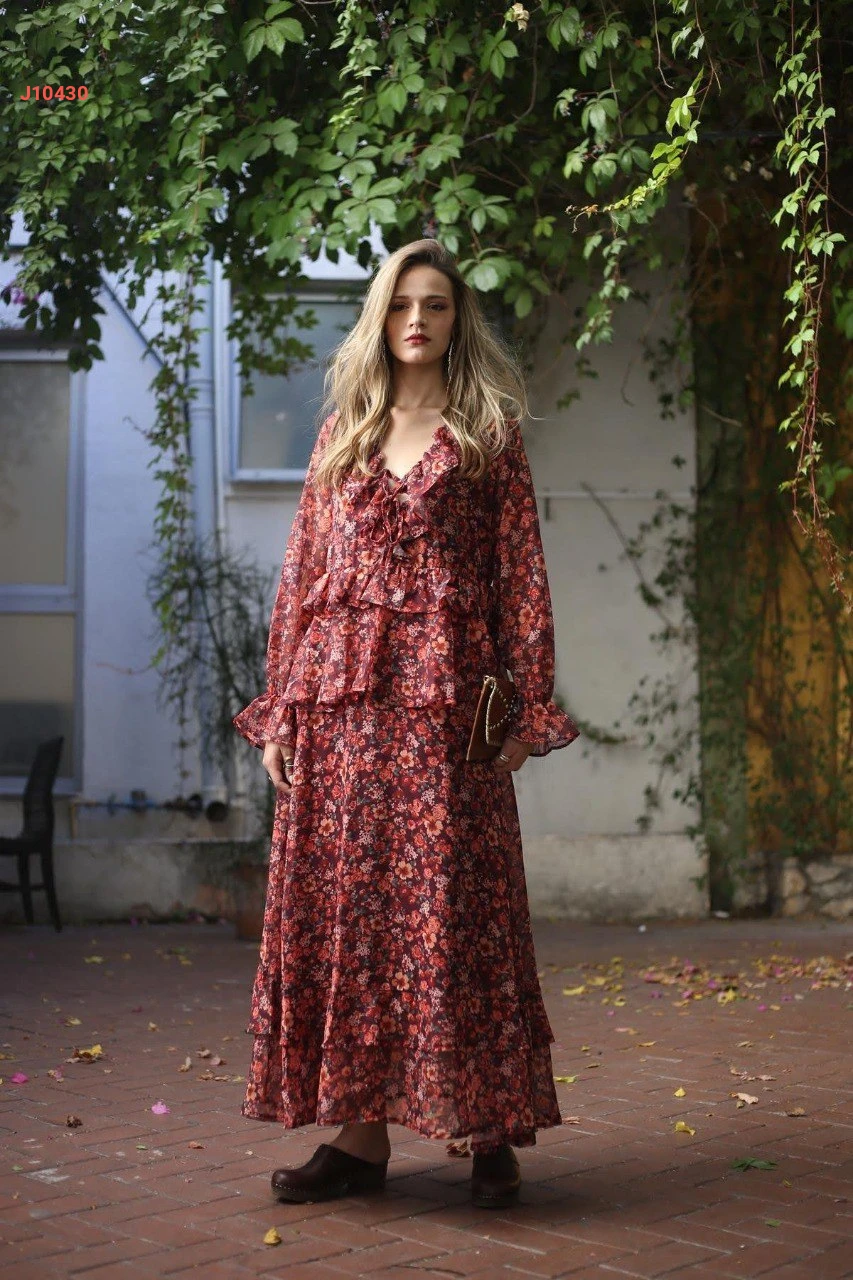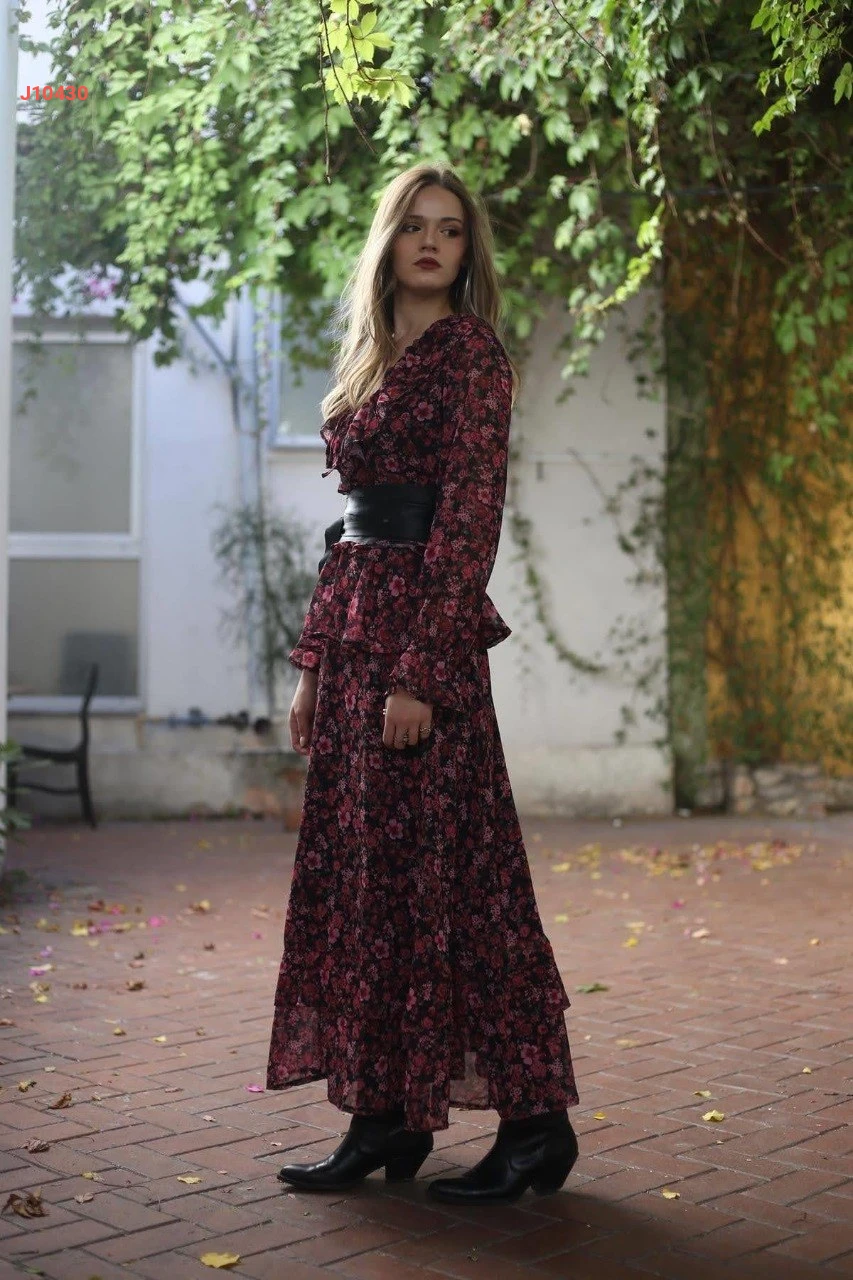 فستان طويل شيفون مورد