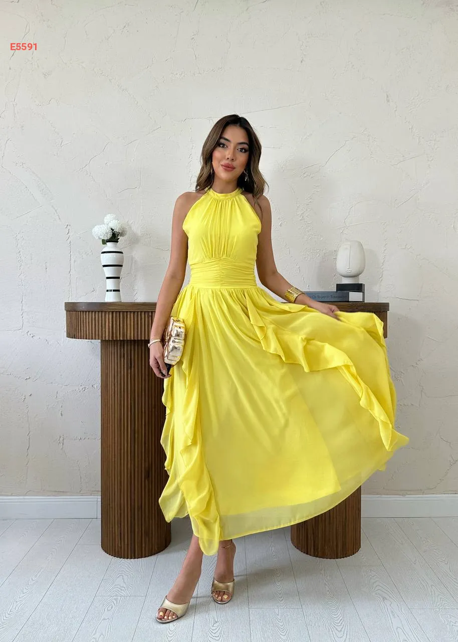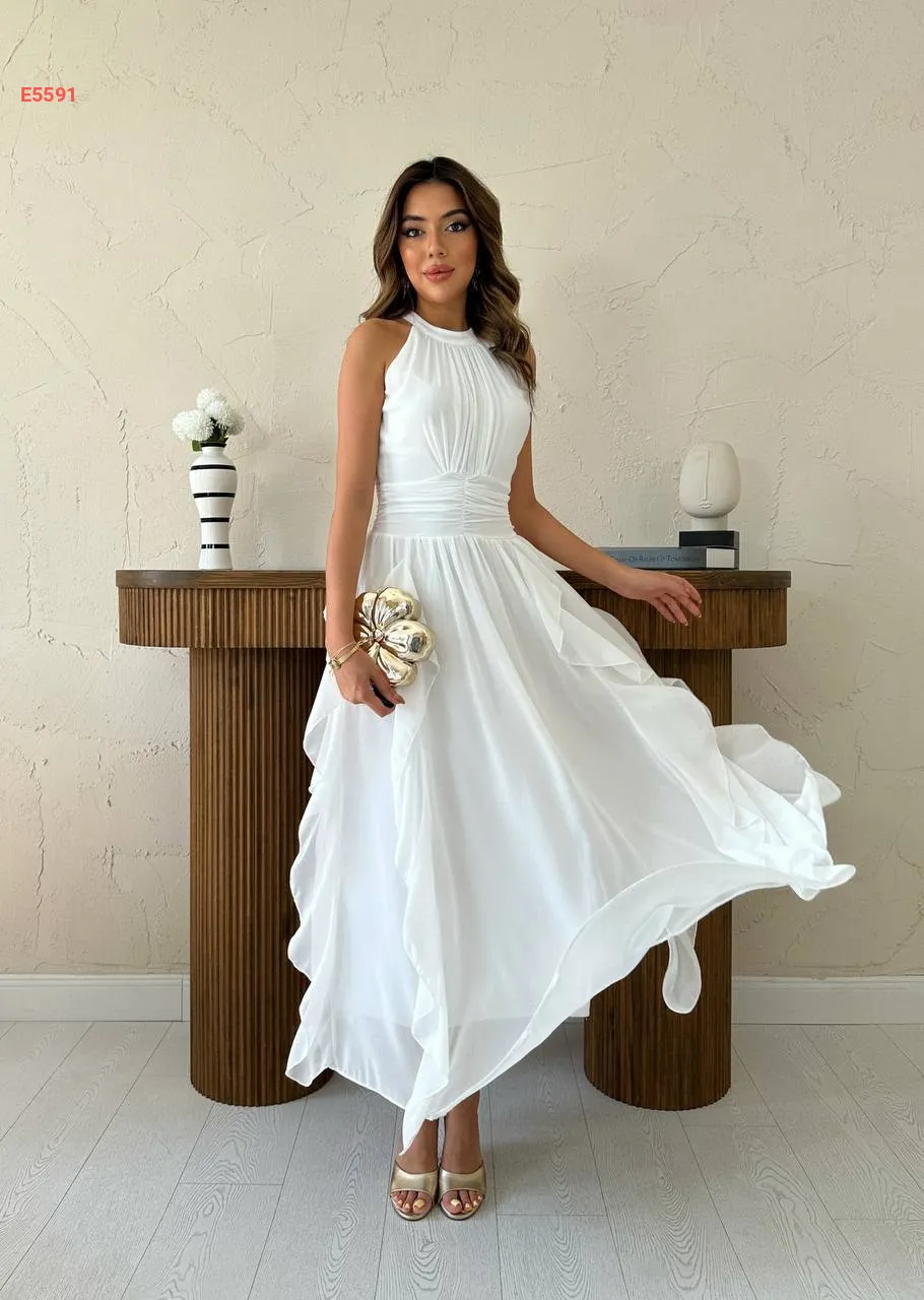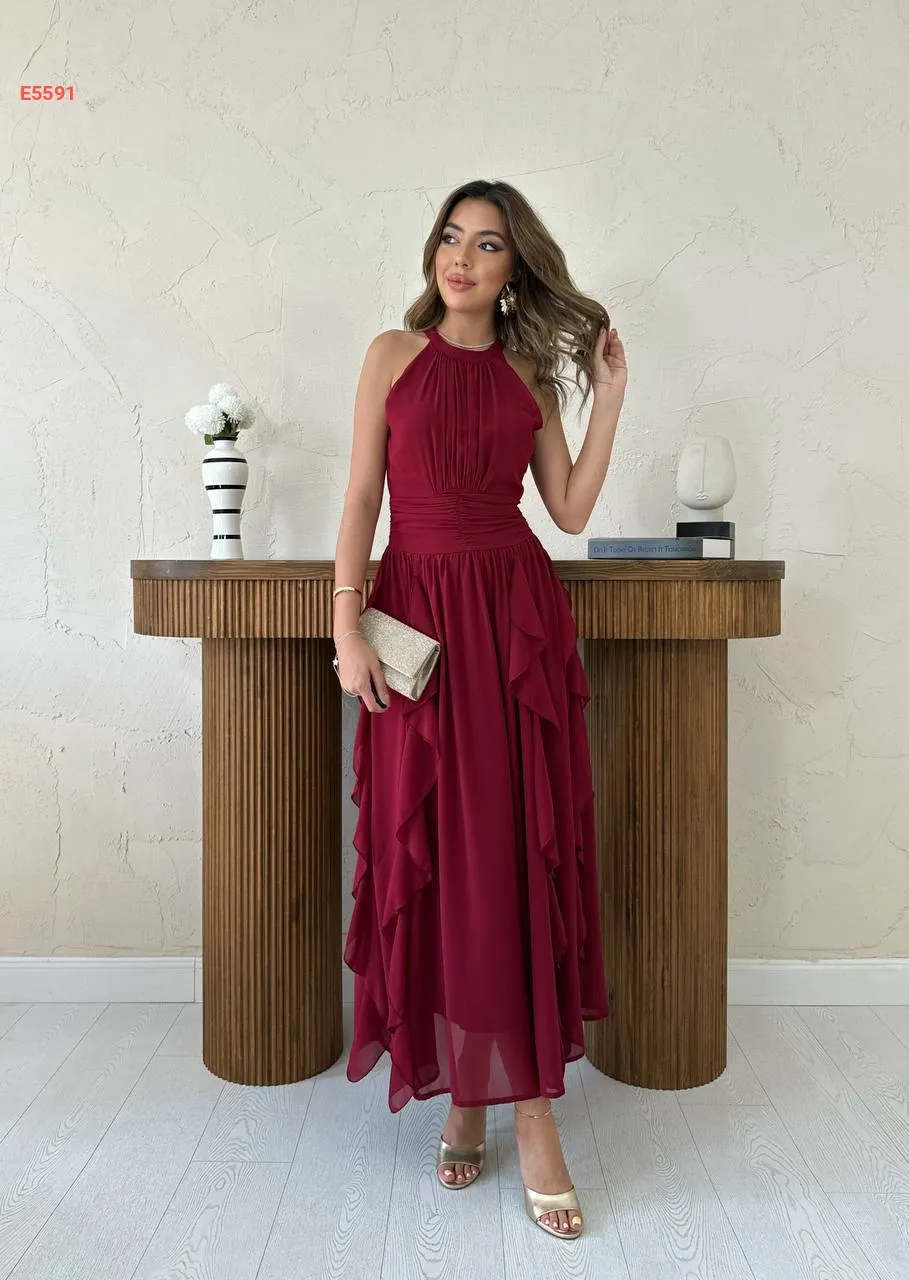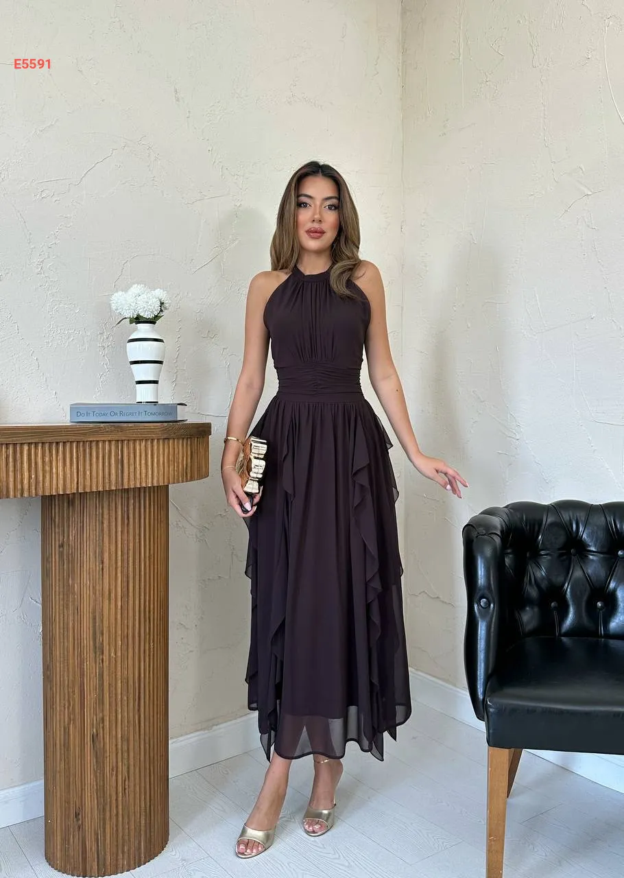 فستان طويل شيفون حفر