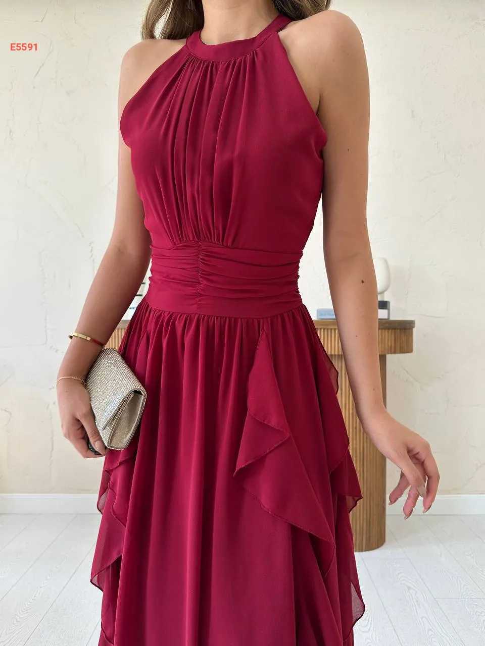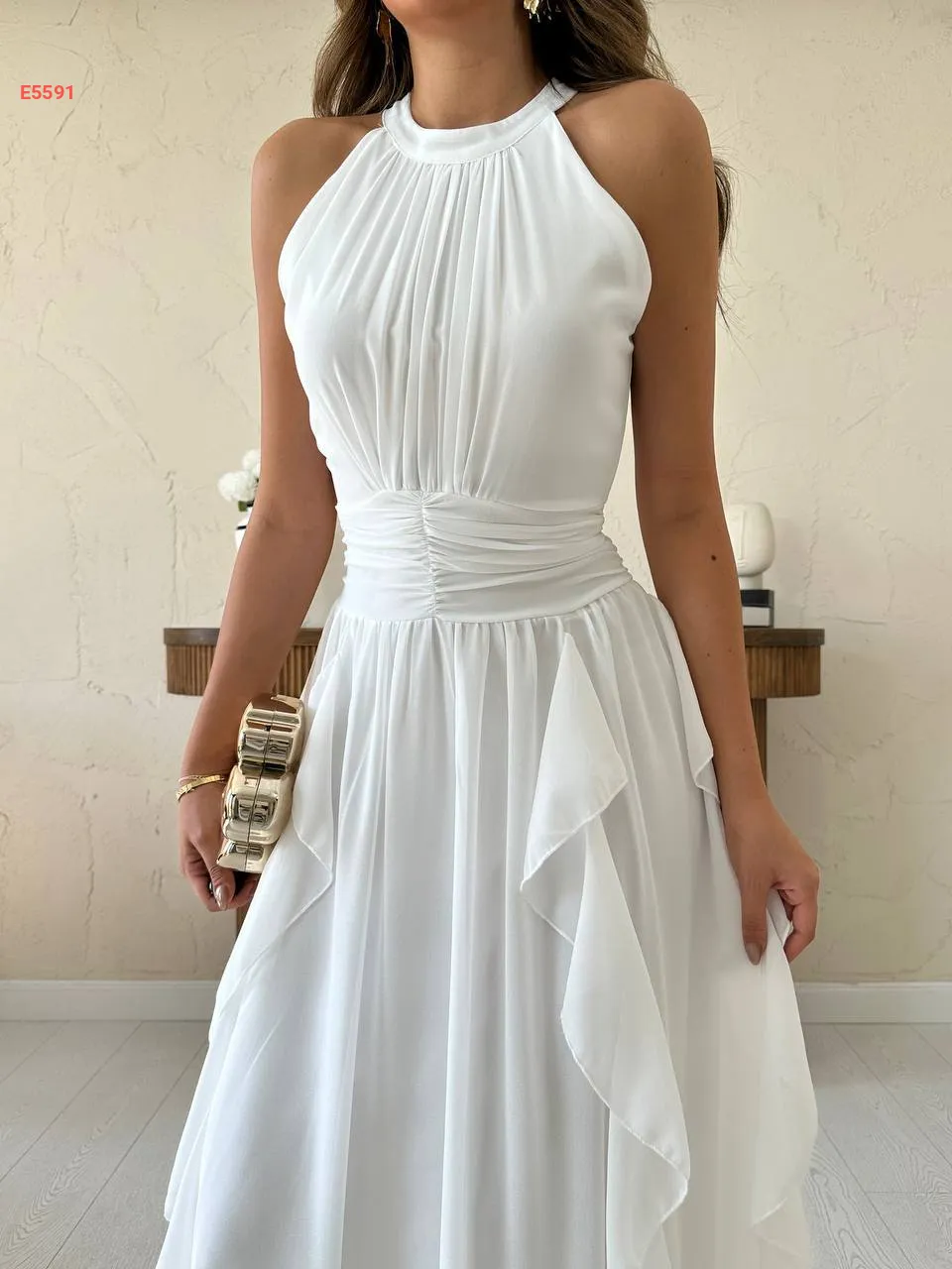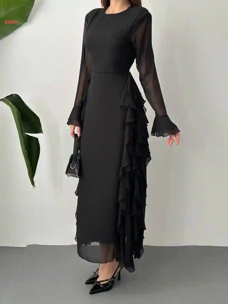 فستان طويل شيفون حفر