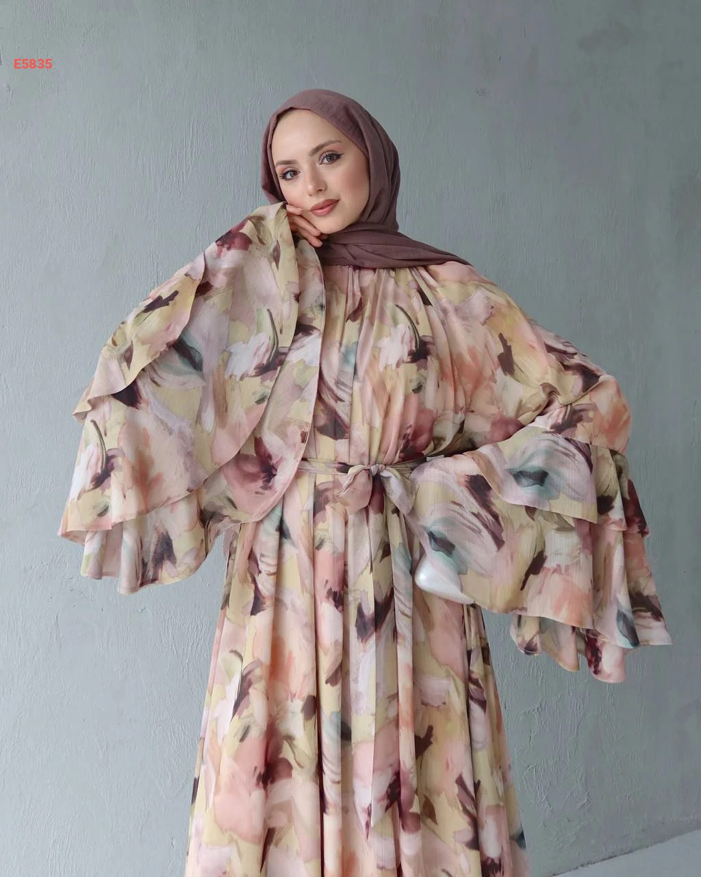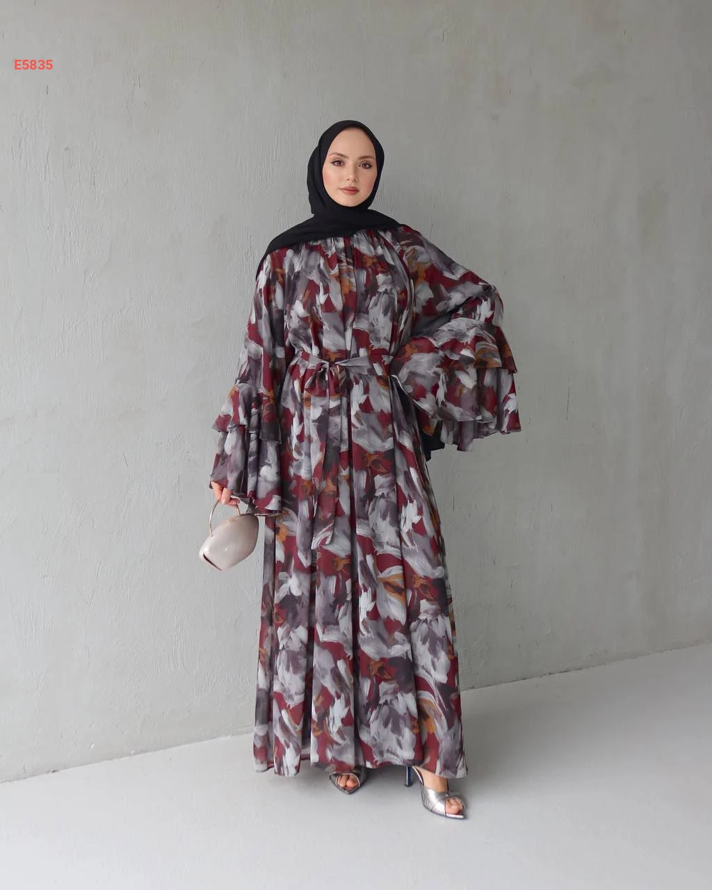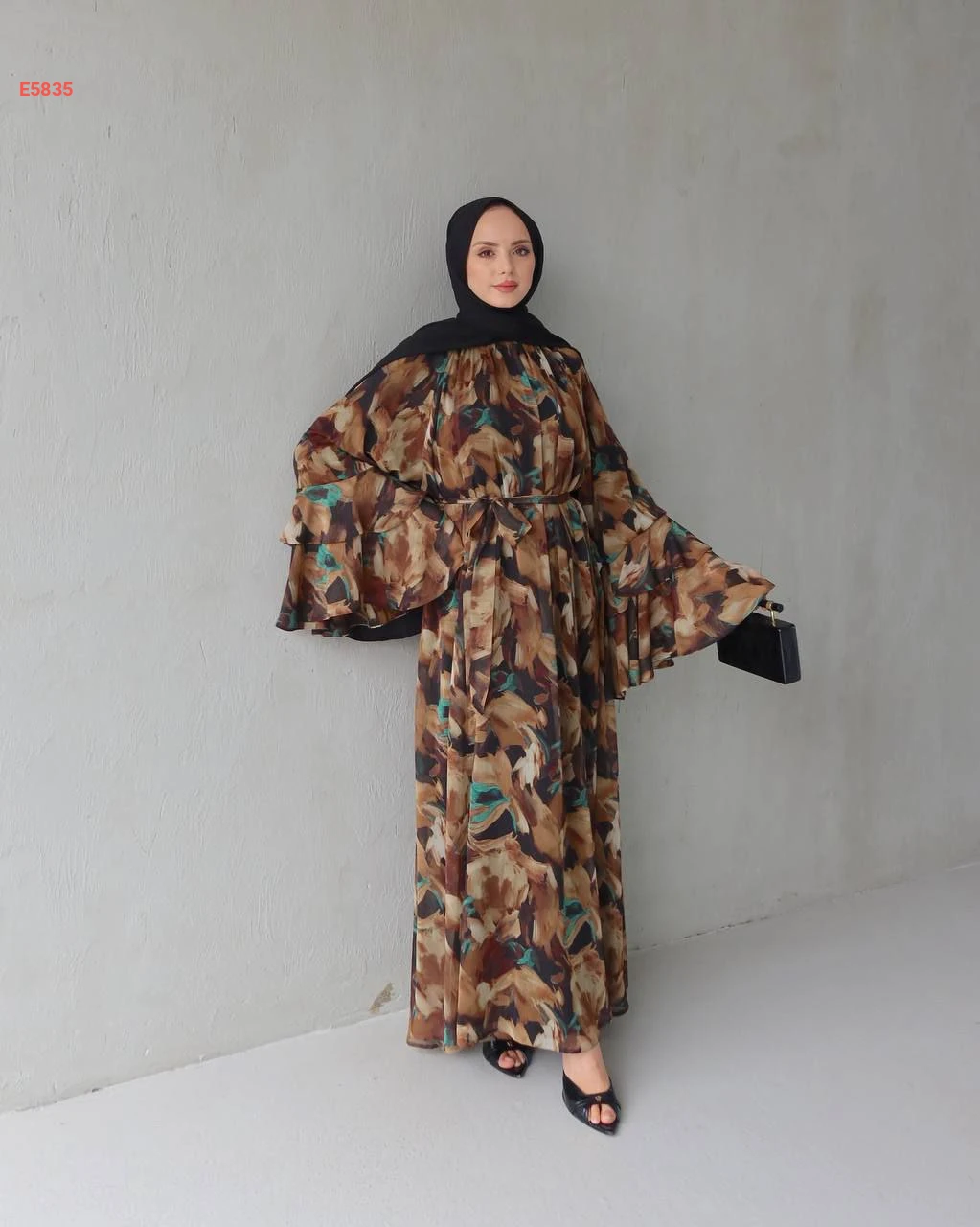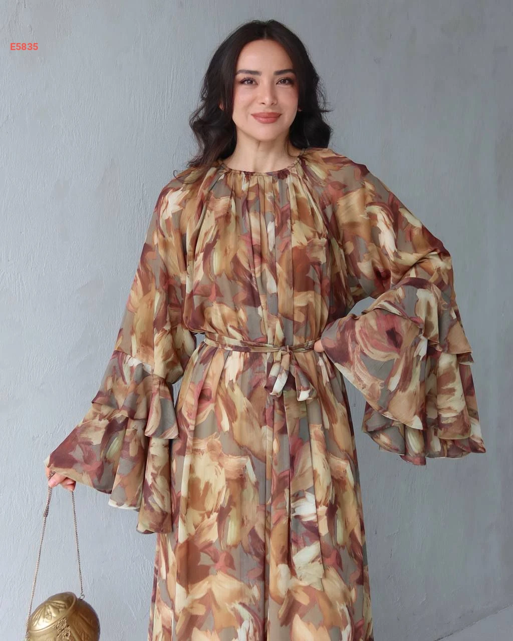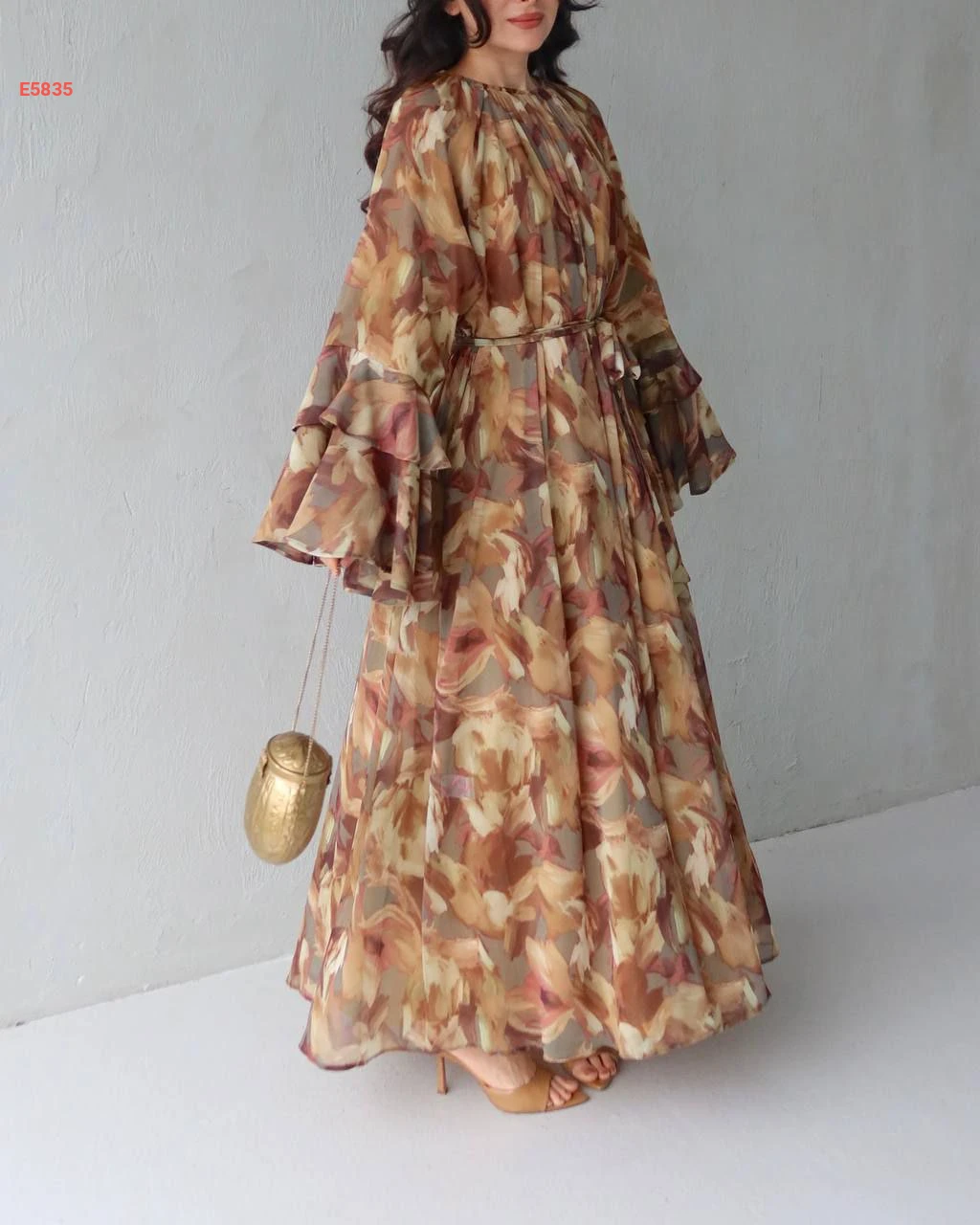 فستان طويل شيفون بأكمام كلوش مكشكشة