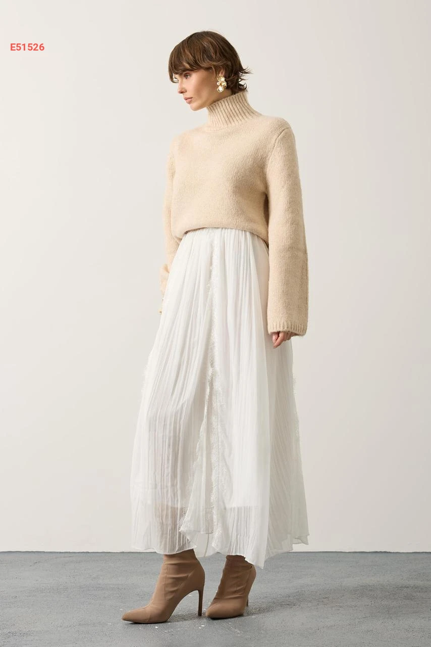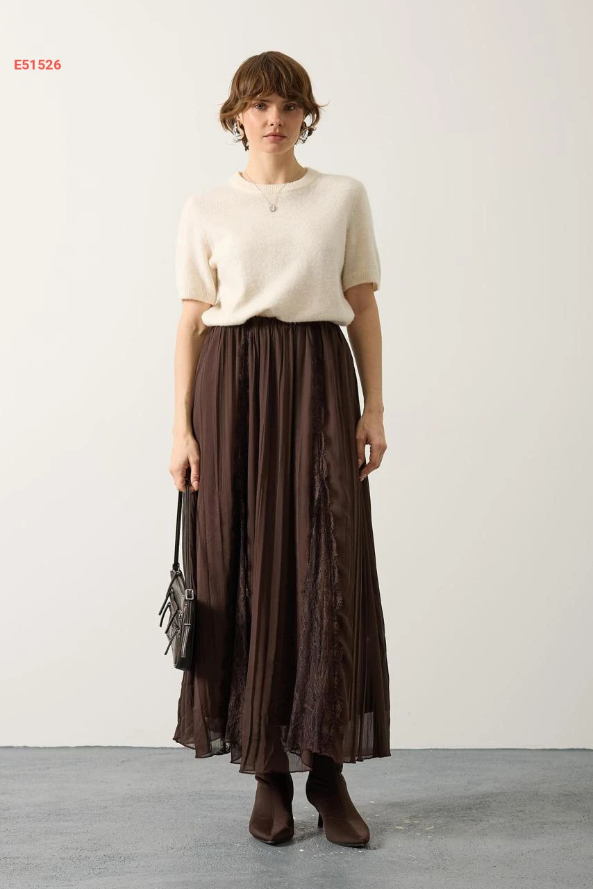 تنورة طويلة شيفون مبطنة ودانتيل
