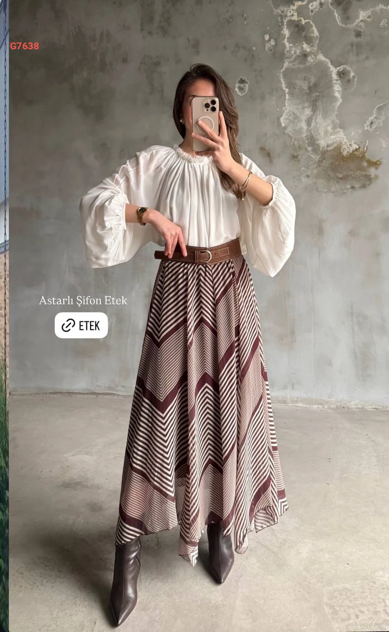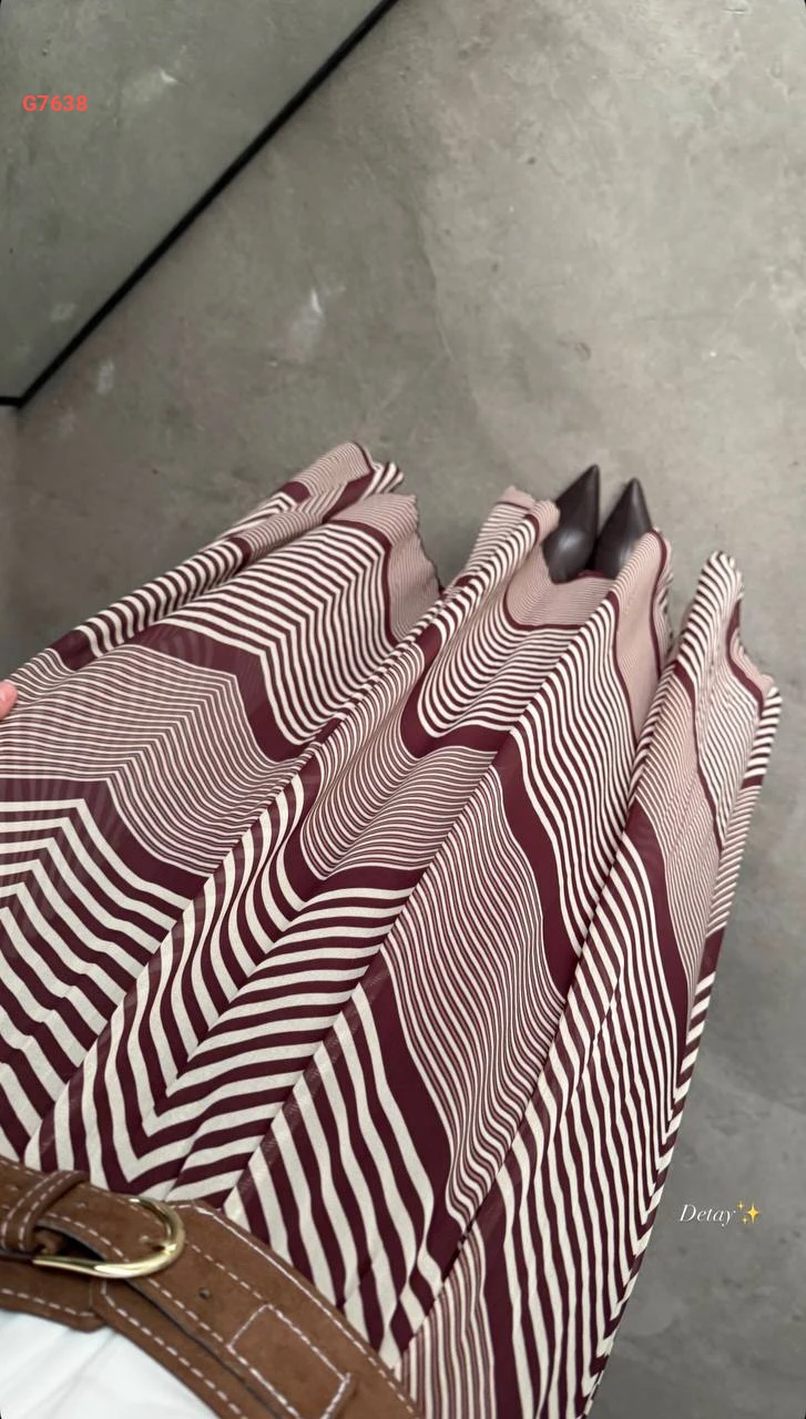 تنورة طويلة شيفون بتفاصيل مخططة