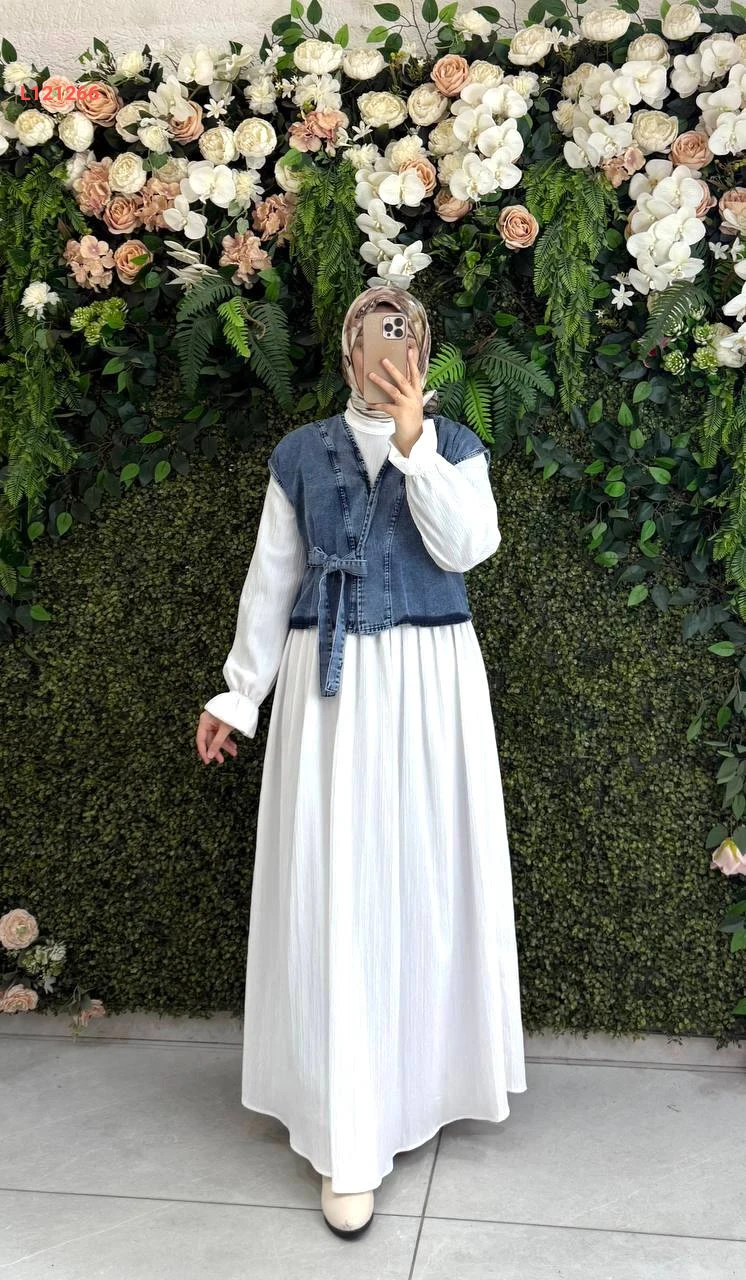 فستان طويل قطن كتان مع يلك جينز