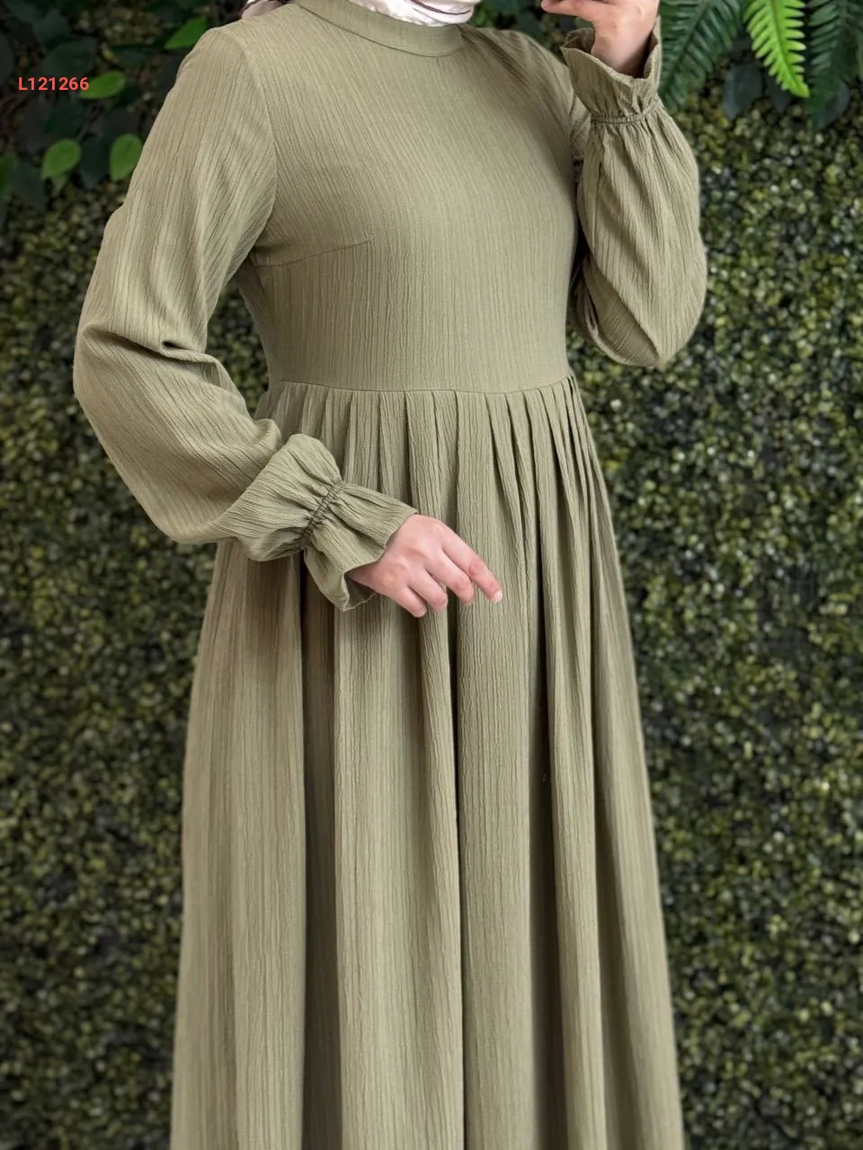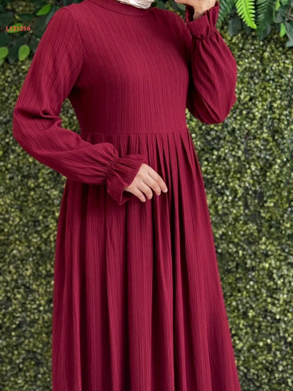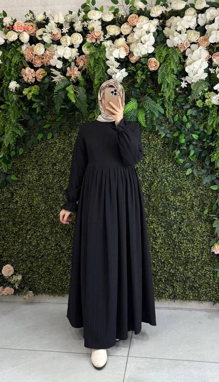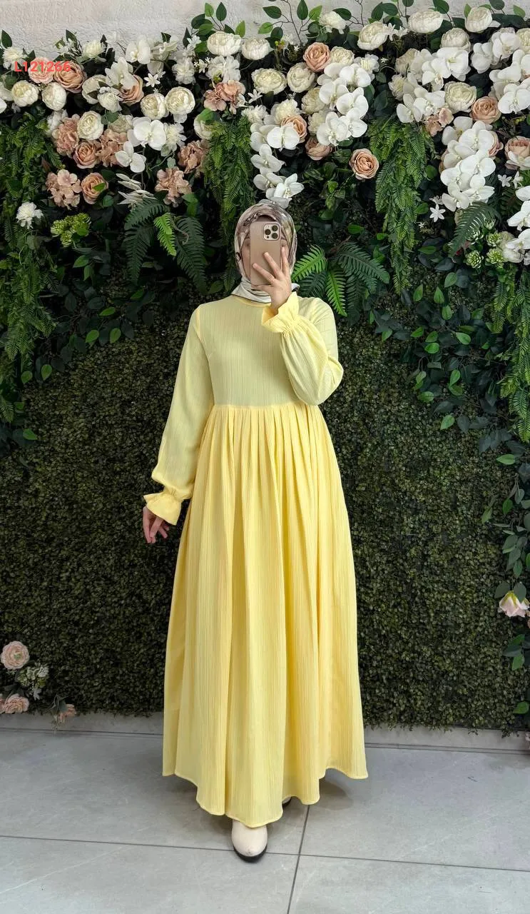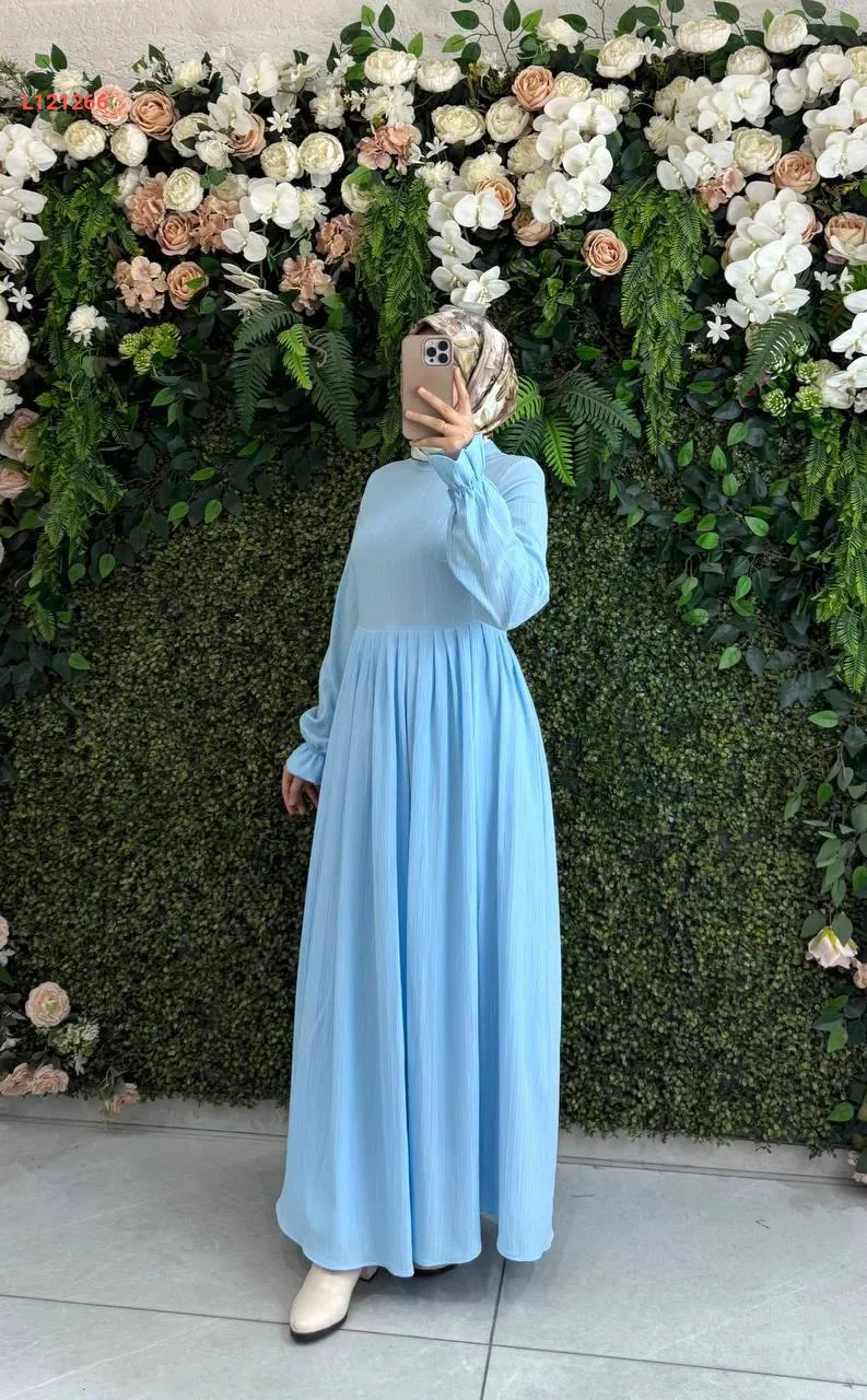 فستان طويل قطن كتان بطيات