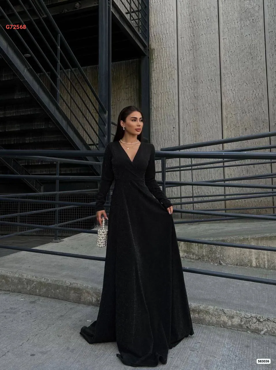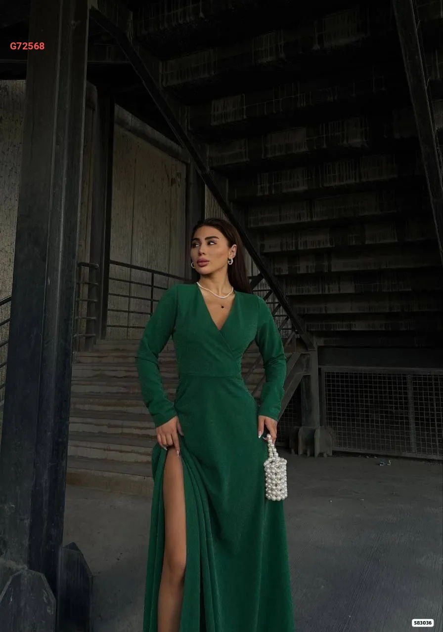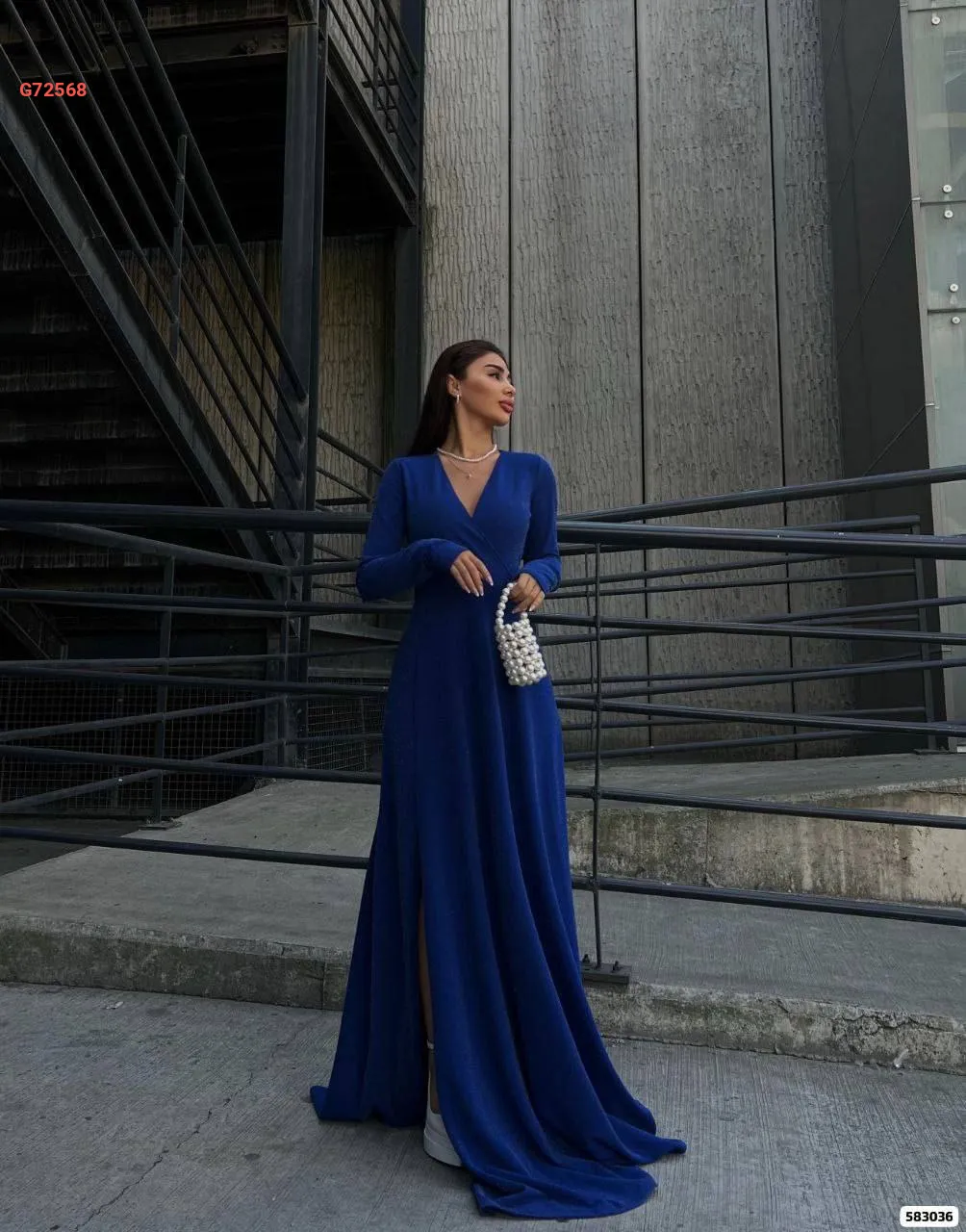 فستان طويل كريب لميع بفتحة جانبية