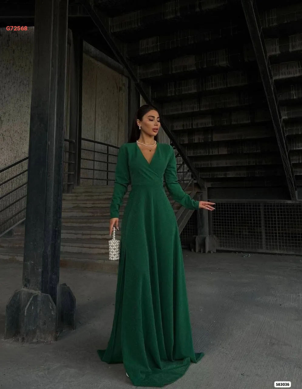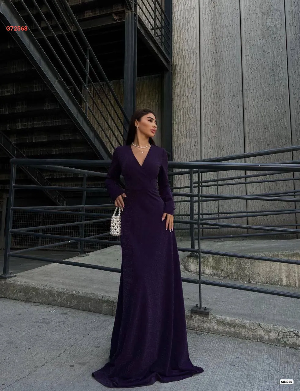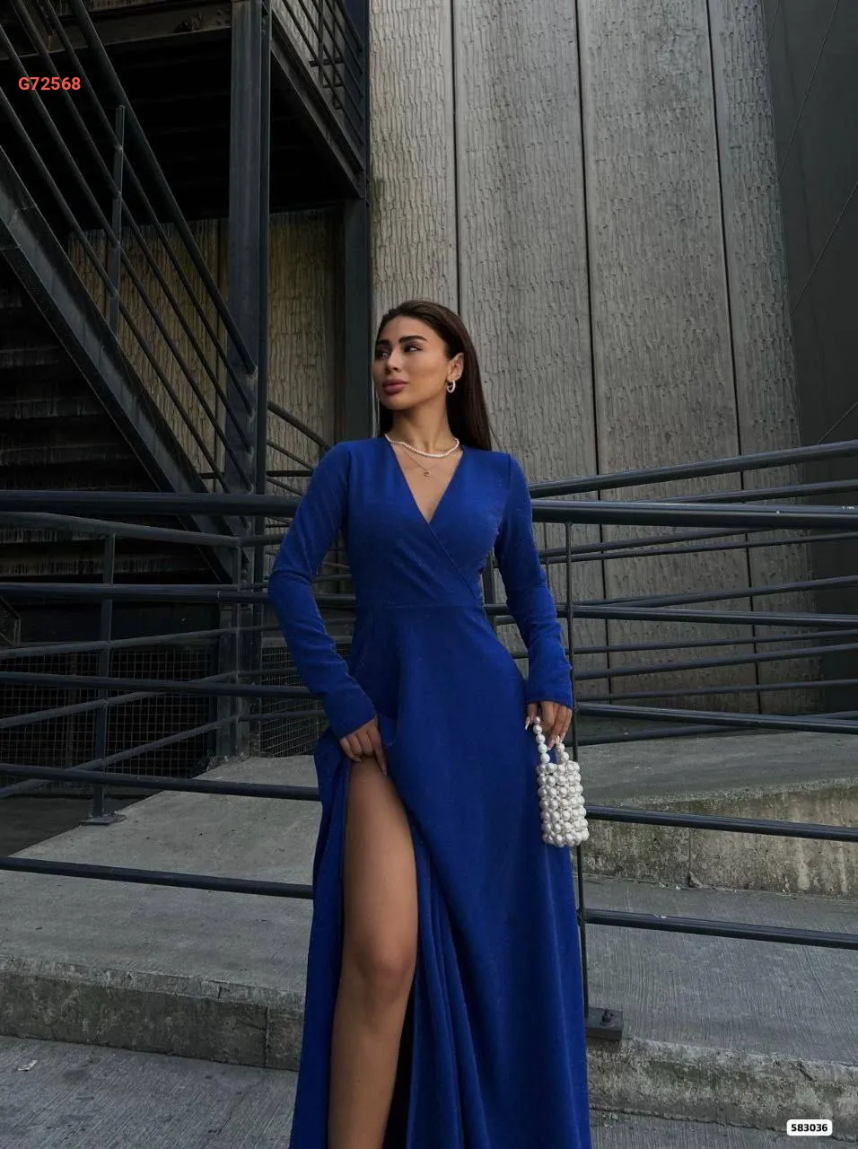 فستان طويل كريب لميع بفتحة جانبية