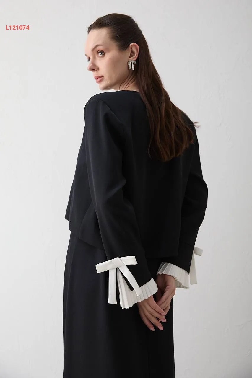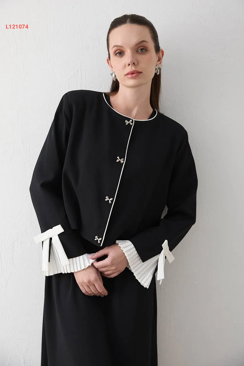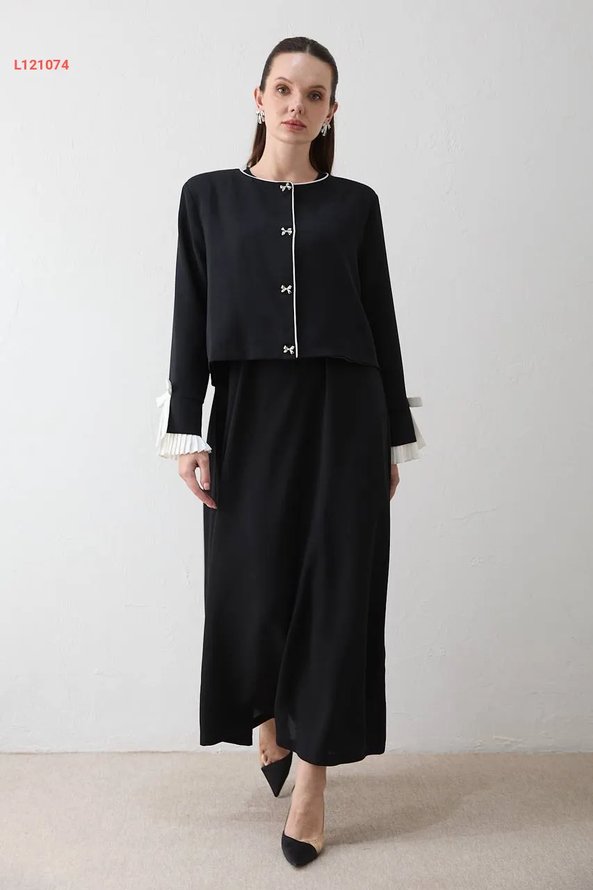 فستان كريب طويل مع جاكيت أزرار فيونك