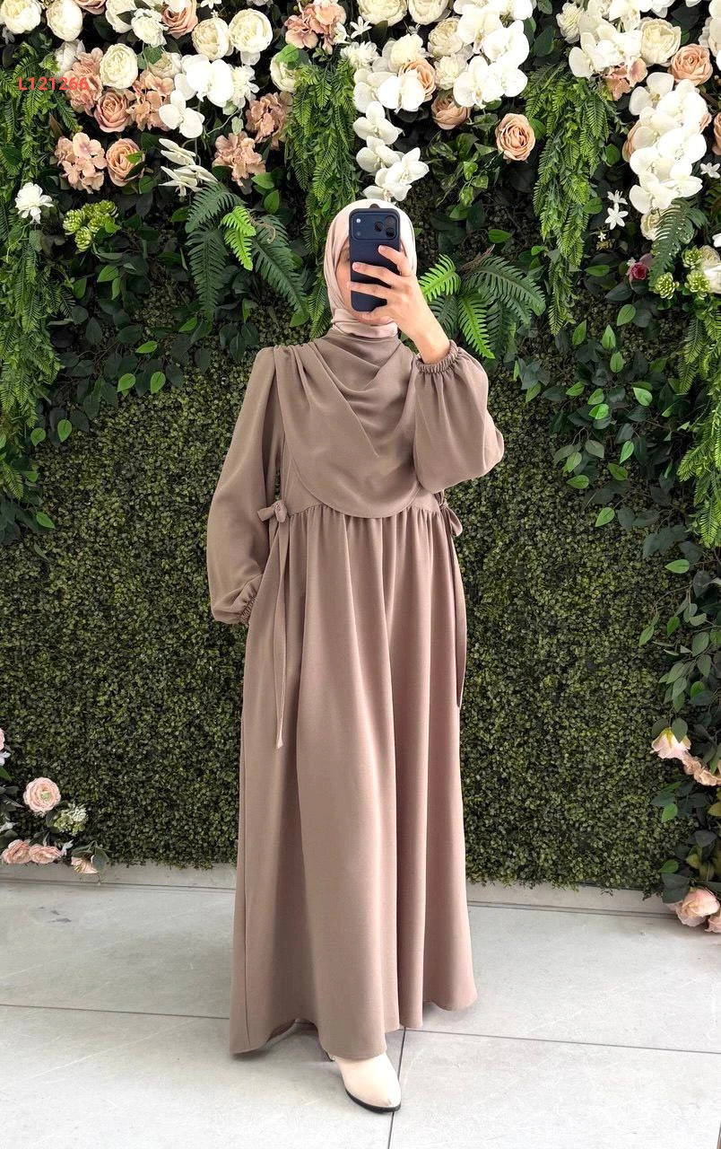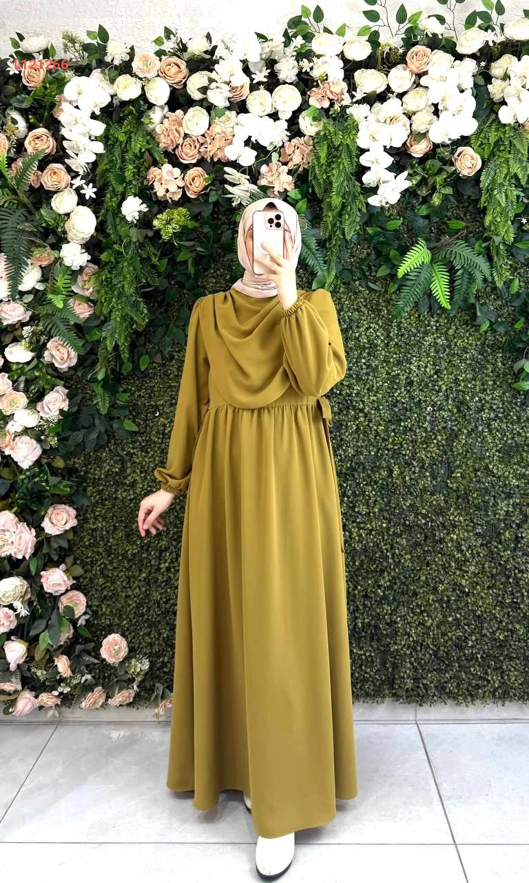 فستان طويل كريب بربطات عالخصر