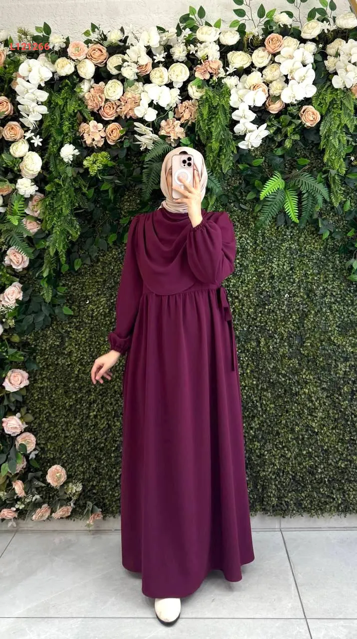 فستان طويل كريب بأكمام زم
