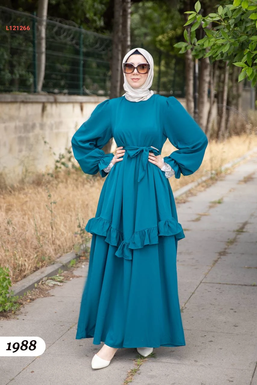 فستان طويل كريستال كريب كشكش