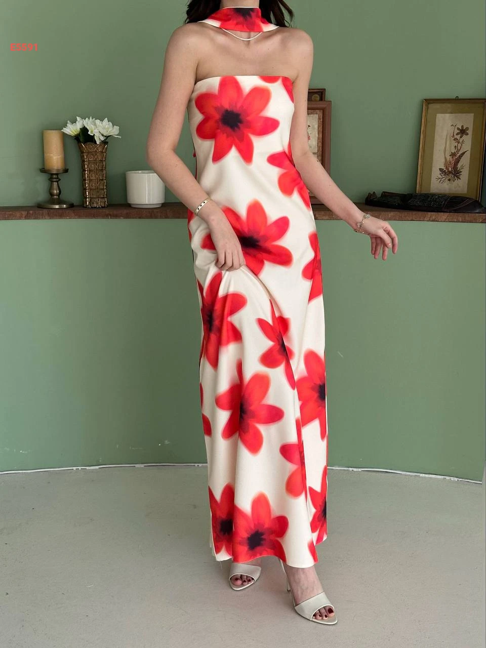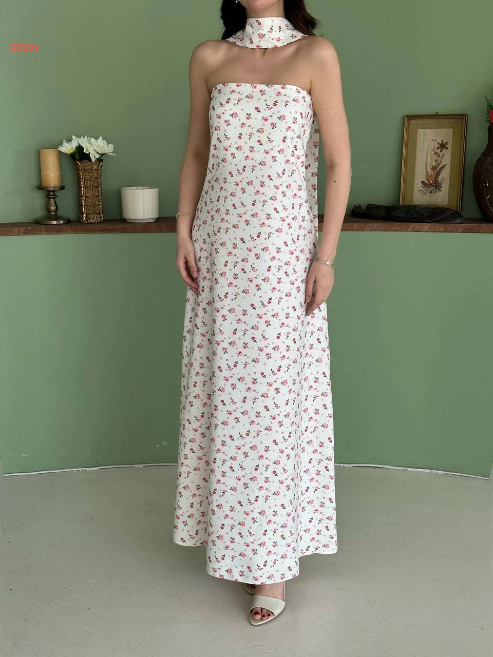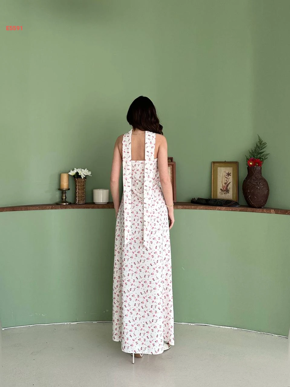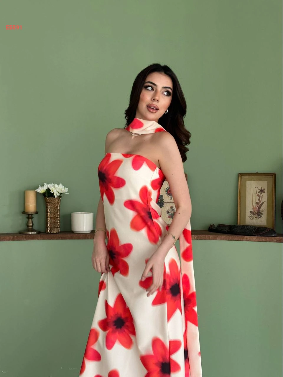 فستان طويل cut مورد مع فولار
