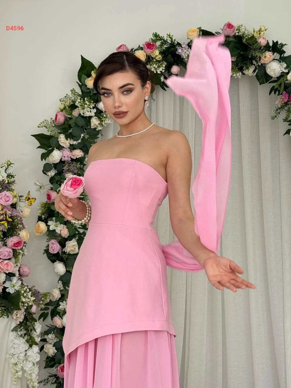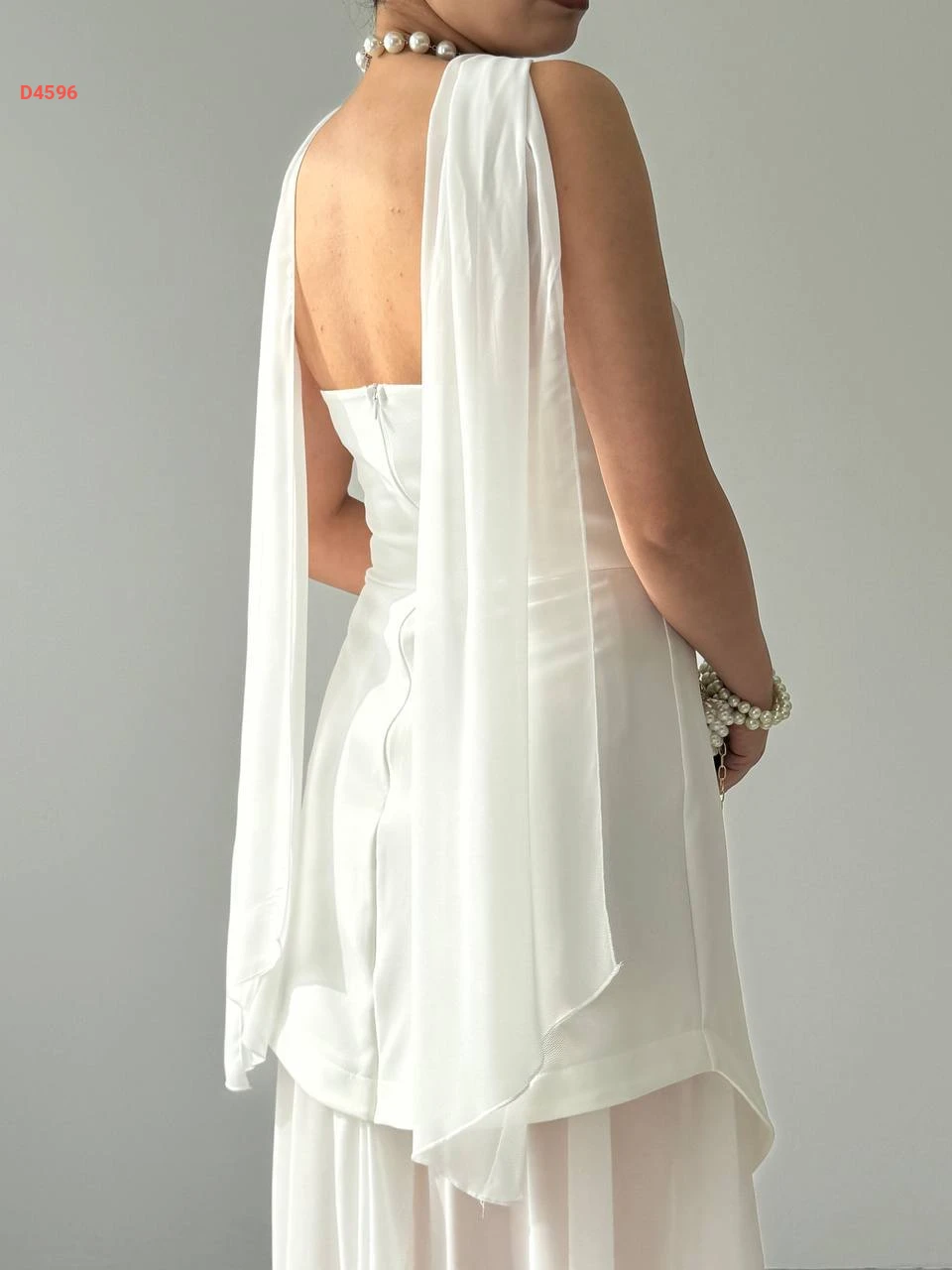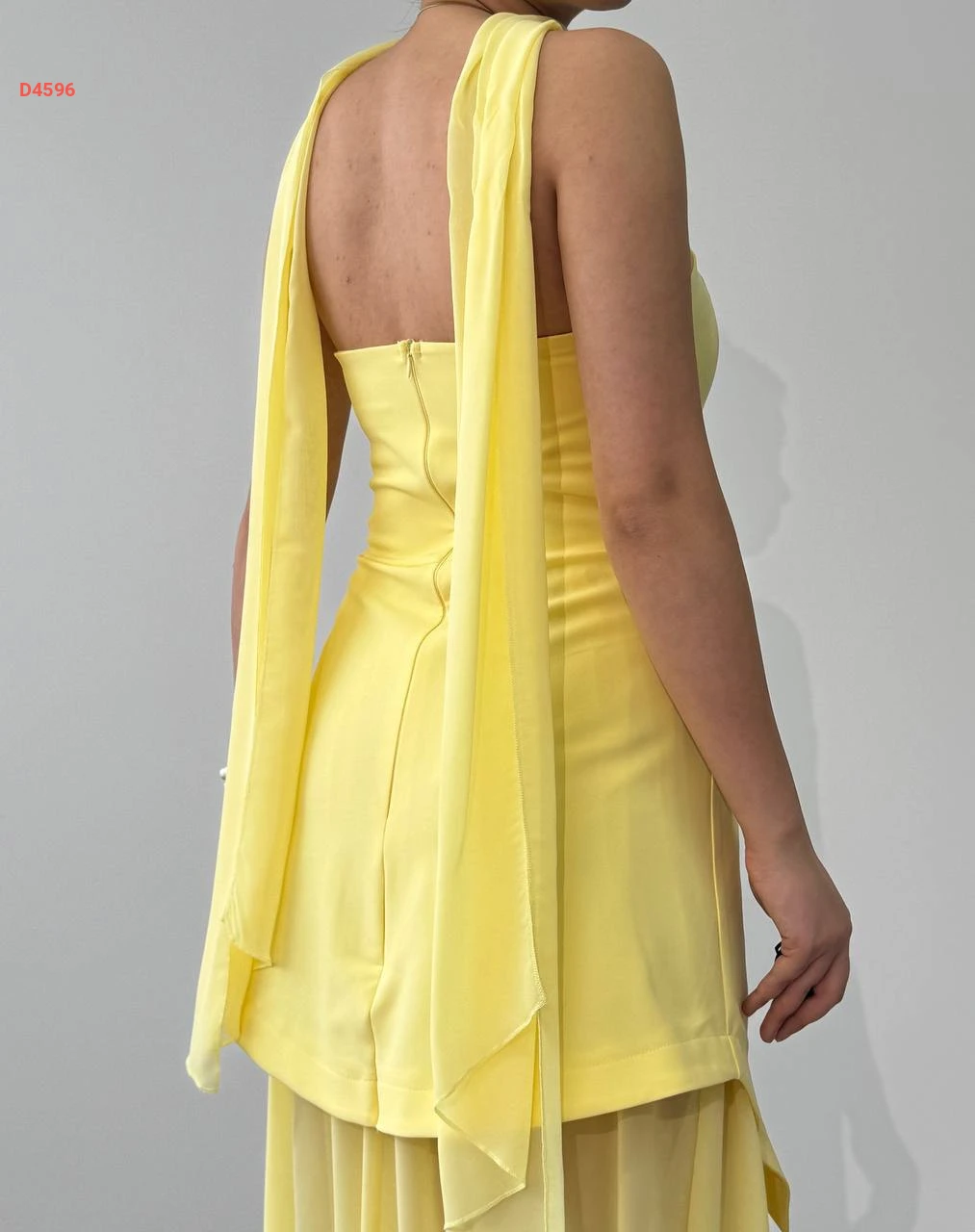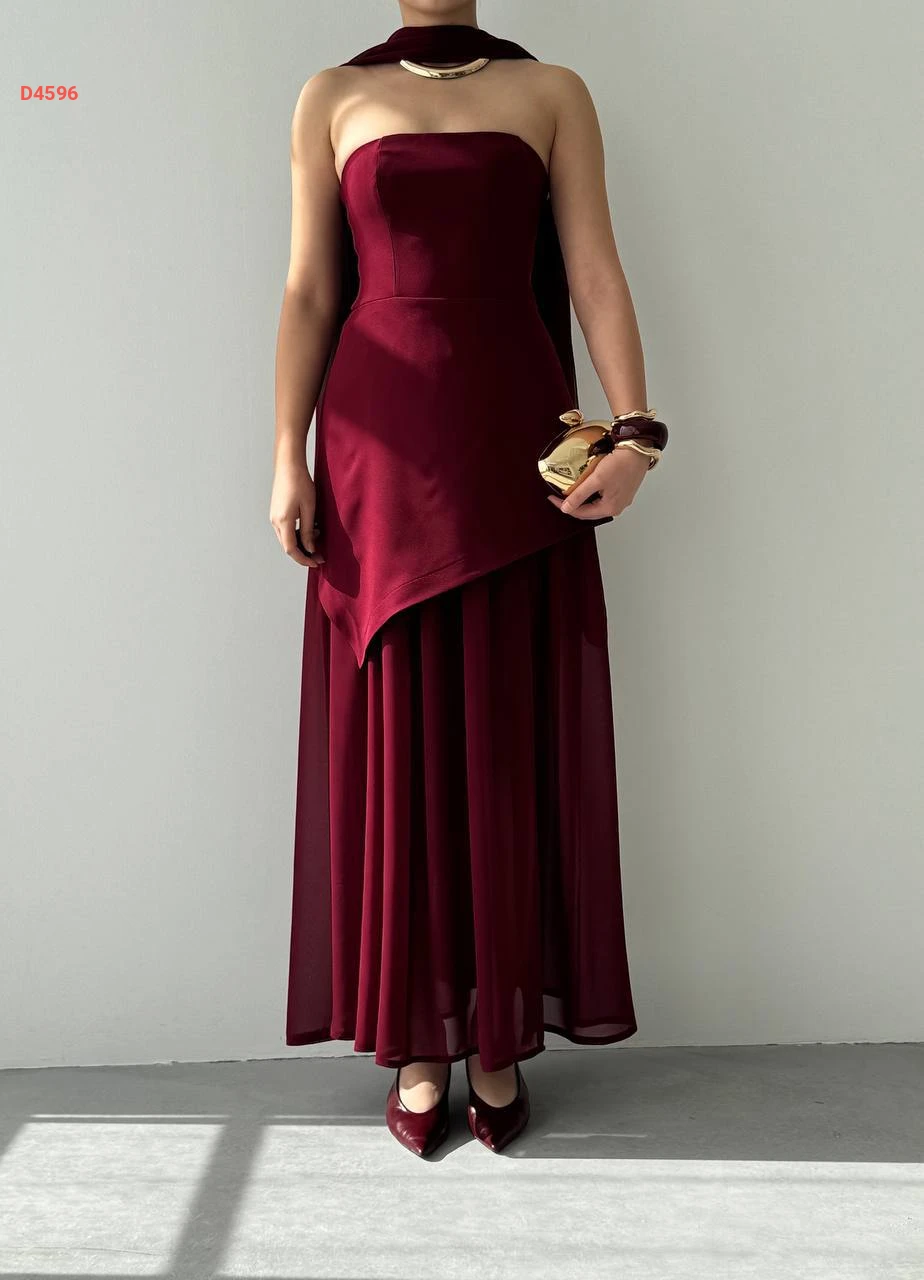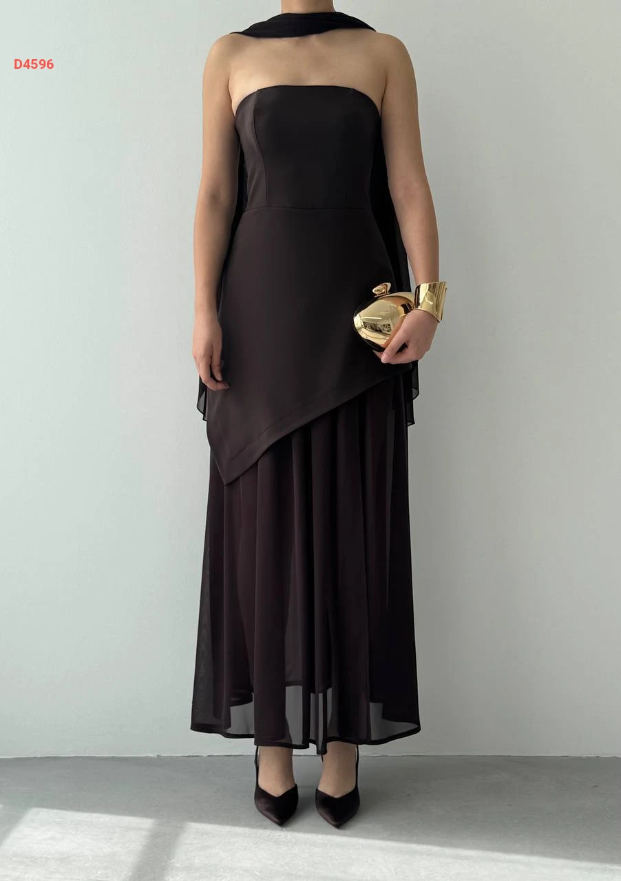 فستان طويل cut بتفاصيل شيفون ووشاح
