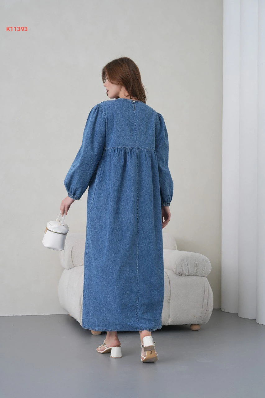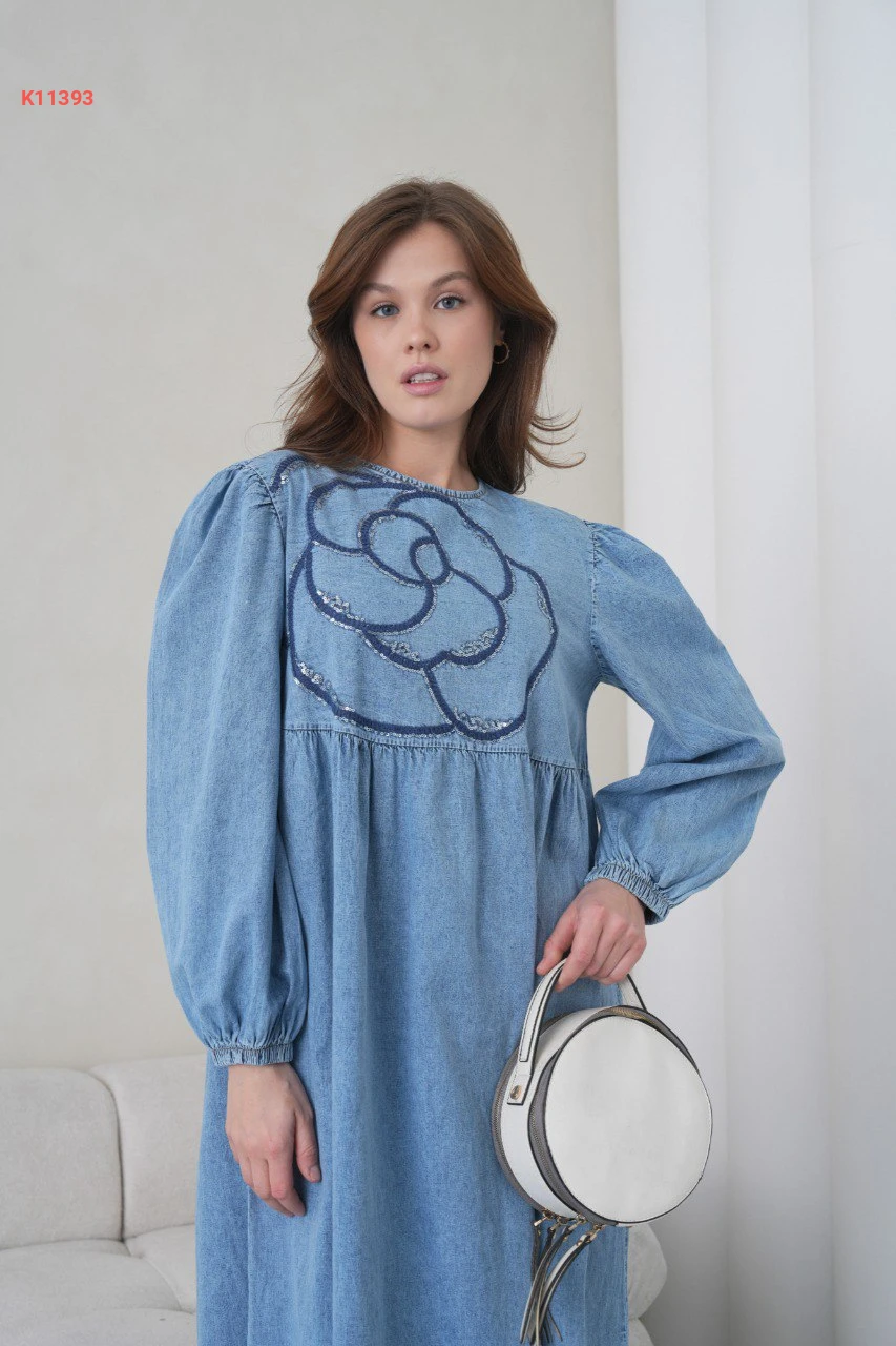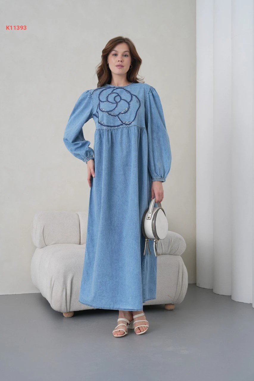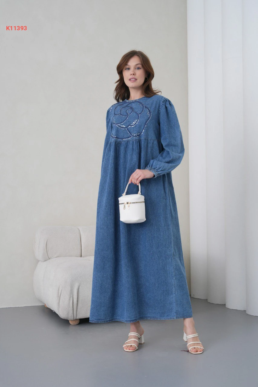 فستان جينز طويل مطرز بالترتر