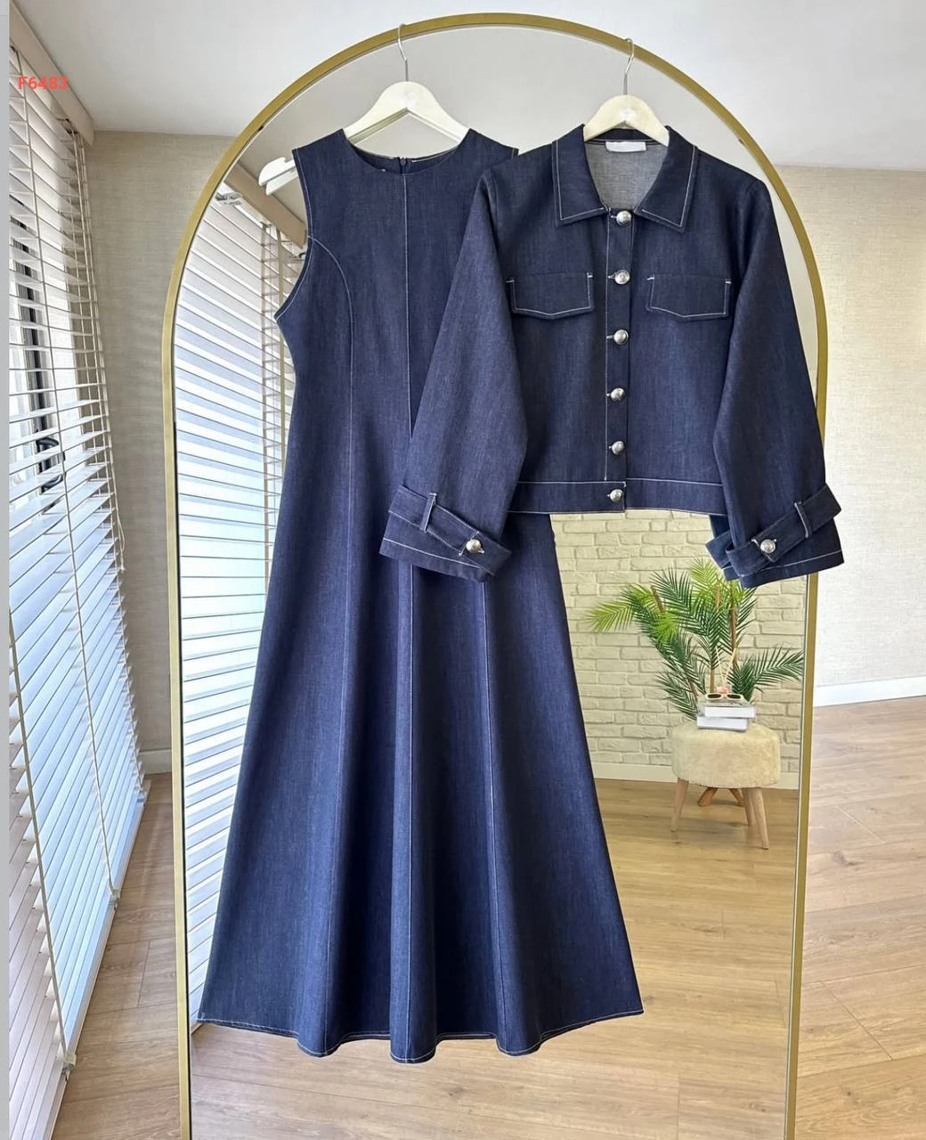 فستان طويل جينز مع جاكيت