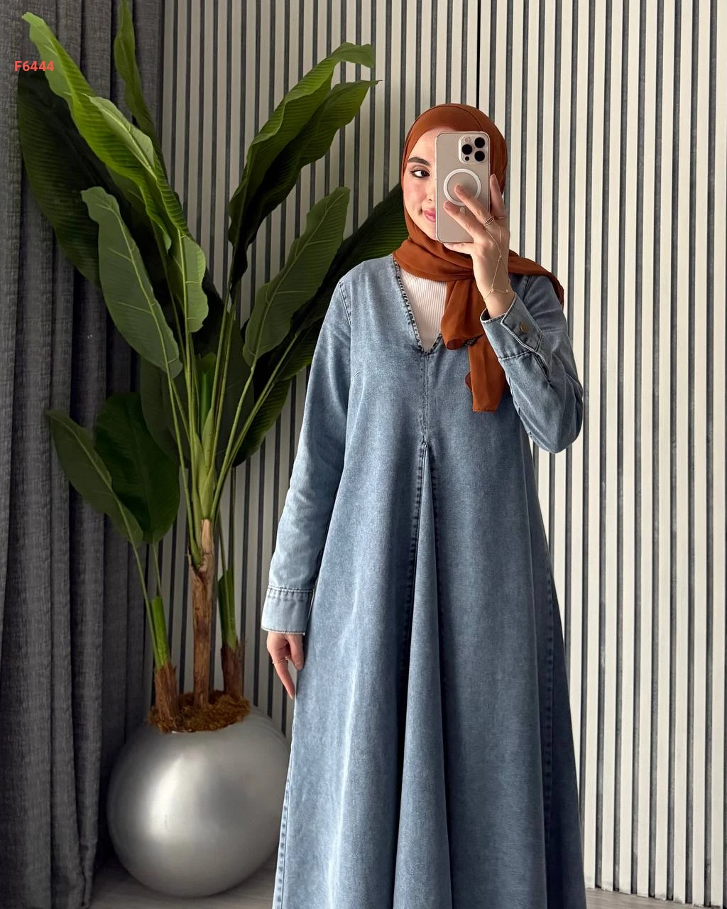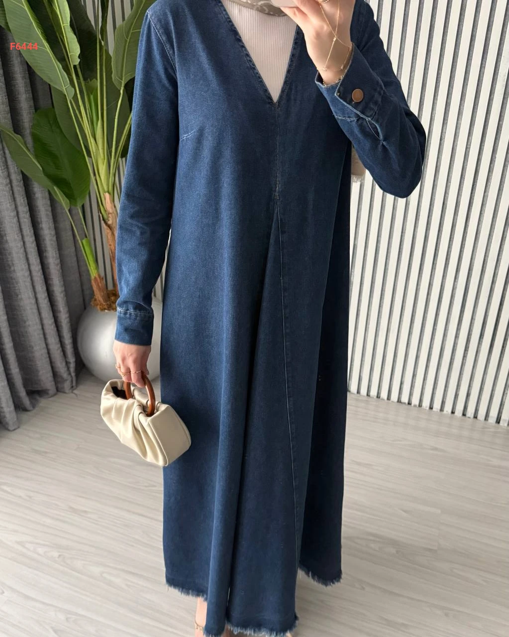 فستان جينز طويل قبة v