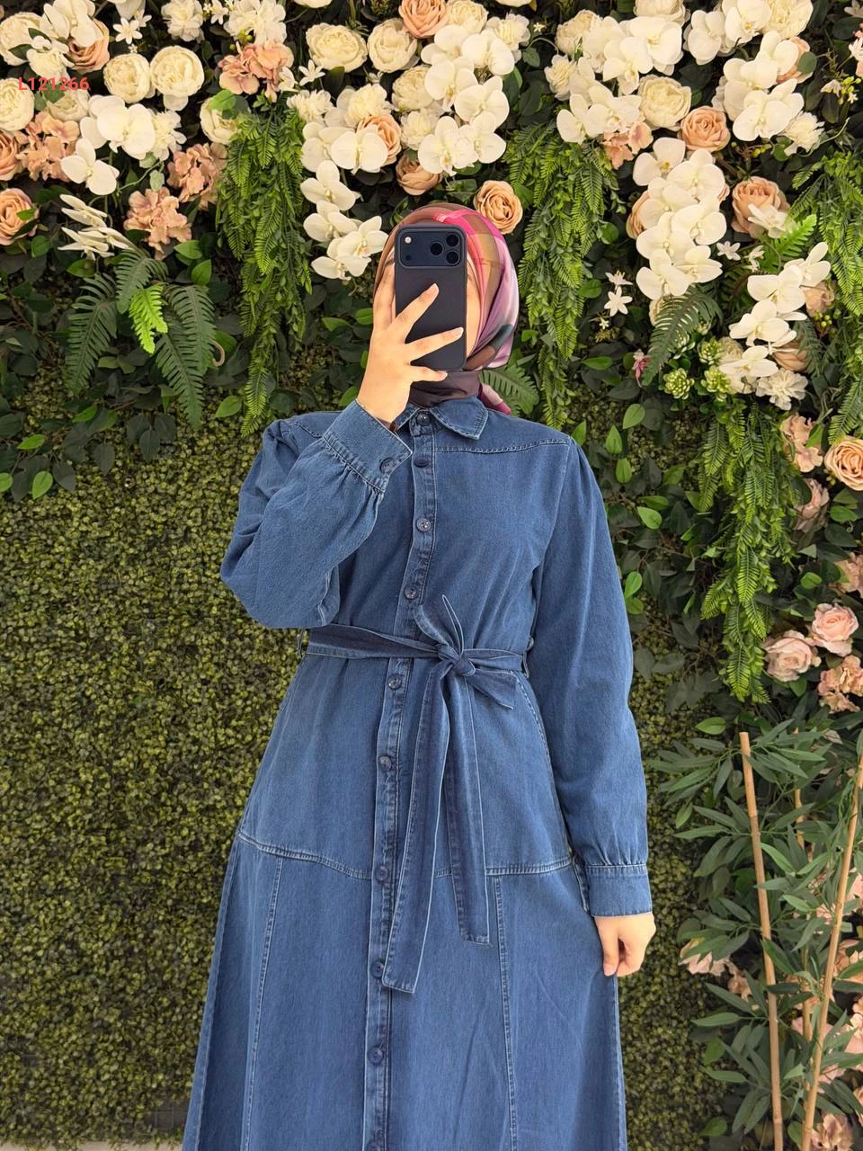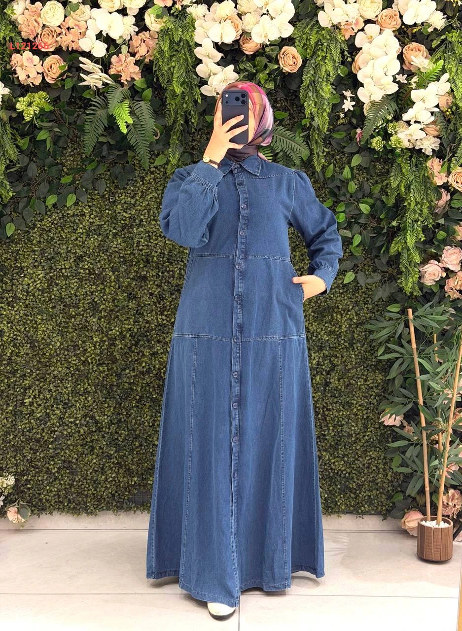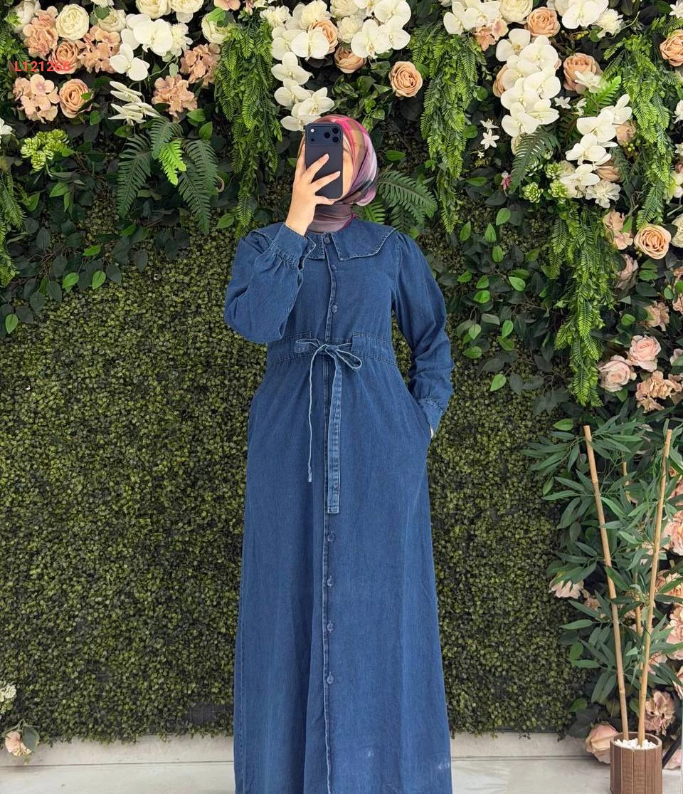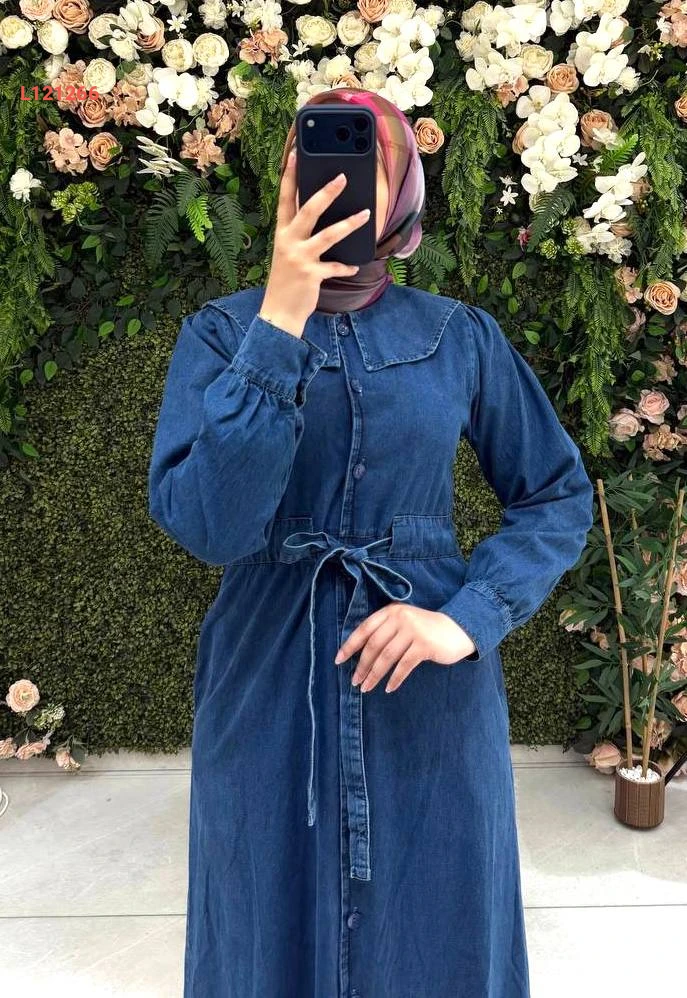 فستان جينز طويل بأزرار وحزام