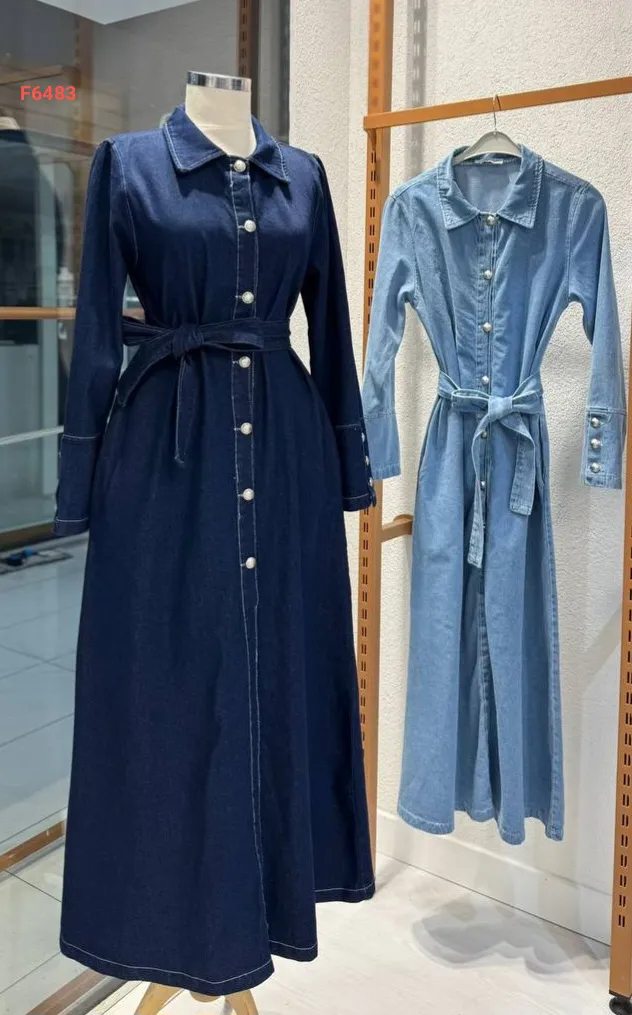 فستان جينز طويل بأزرار