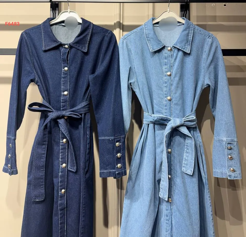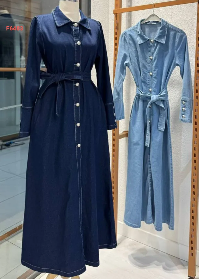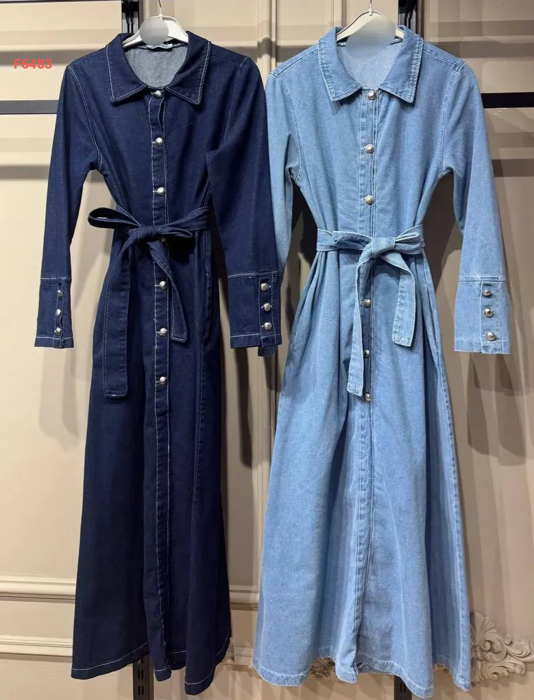 فستان جينز طويل بأزرار