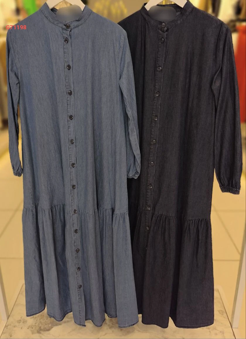 فستان جينز طويل بأزرار