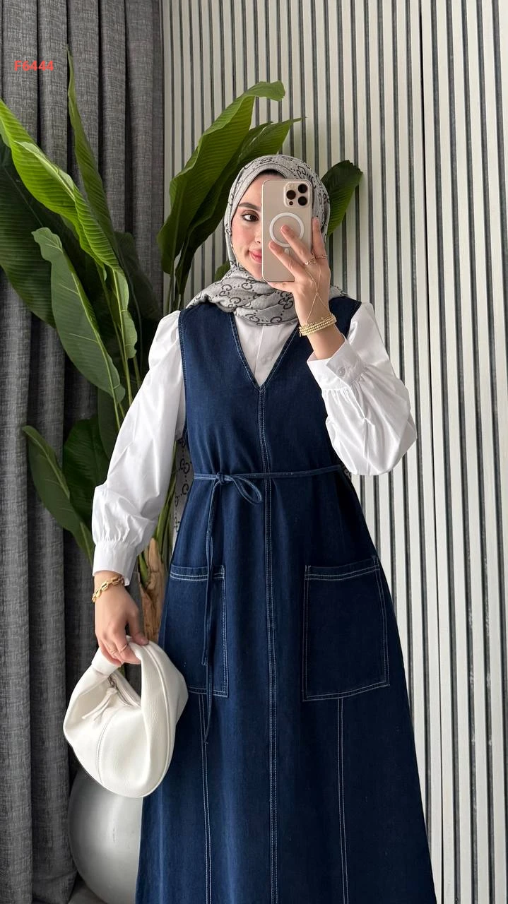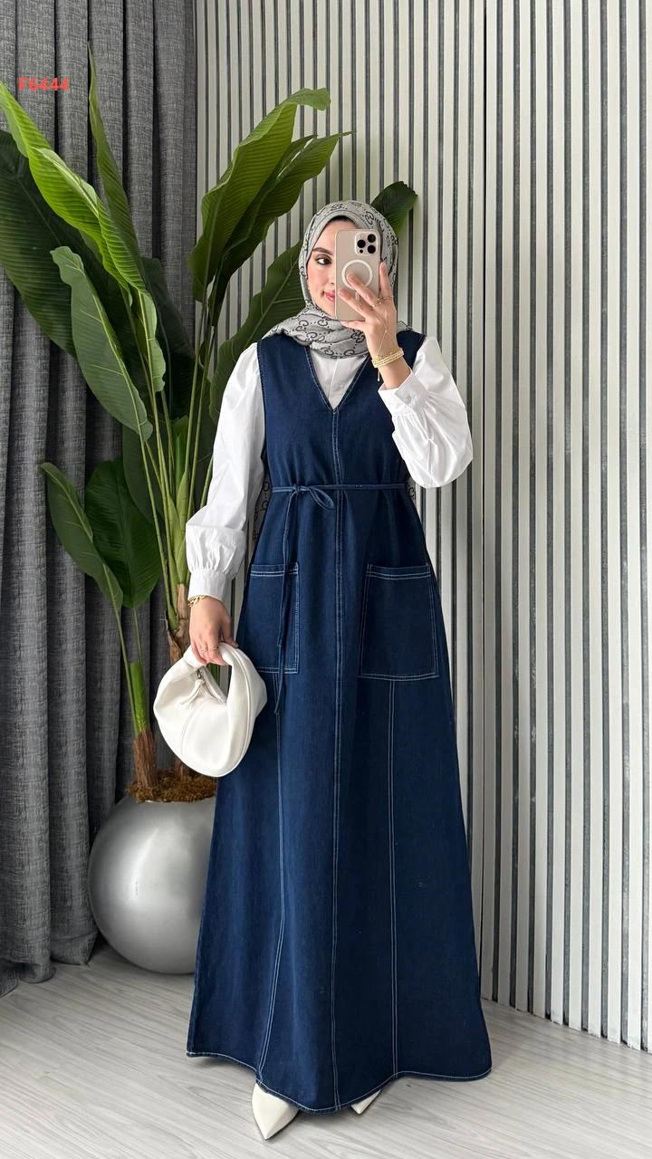 فستان جينز طويل جيليه بجيوب