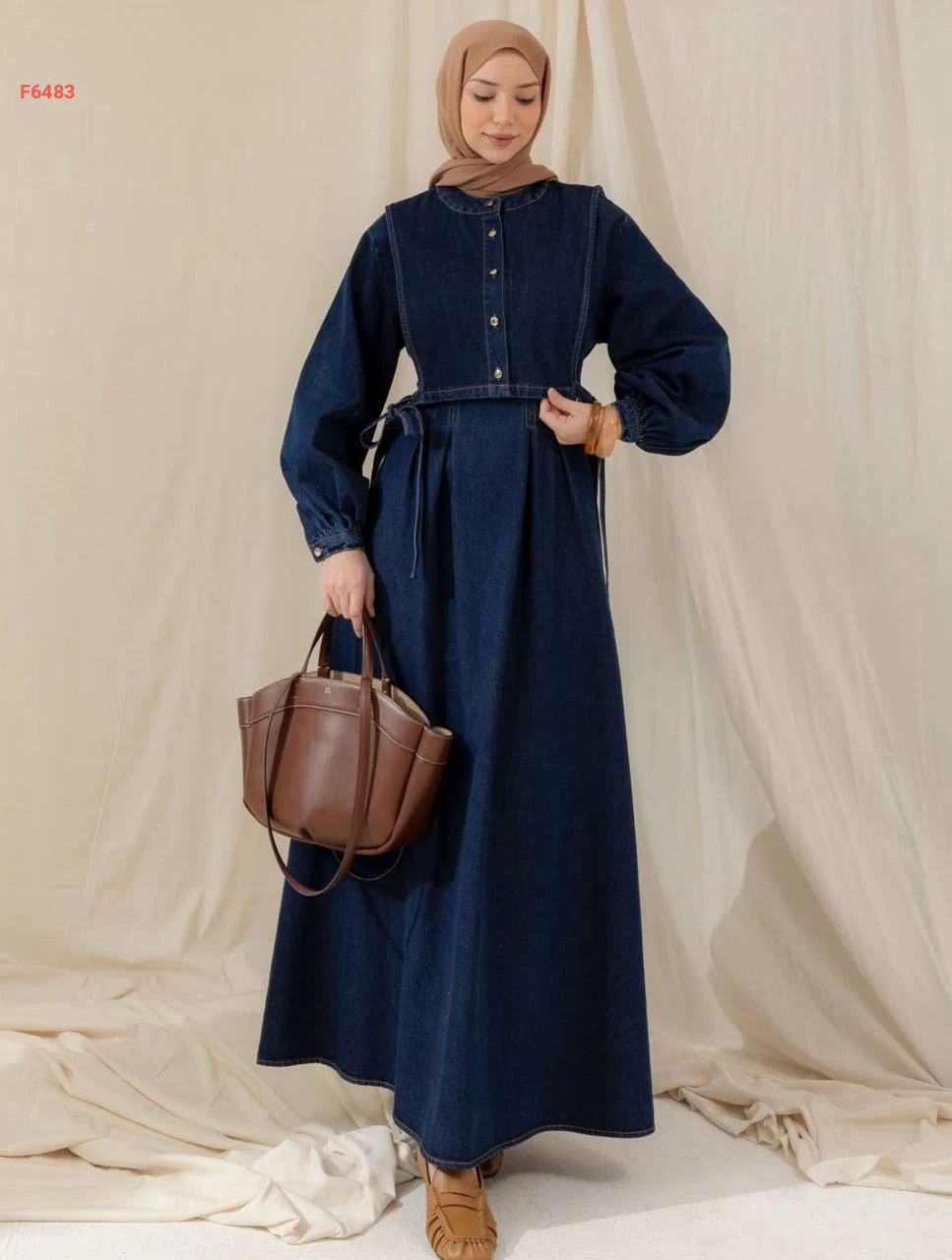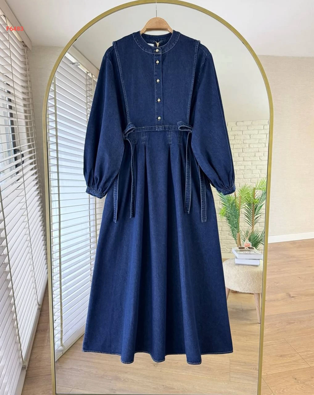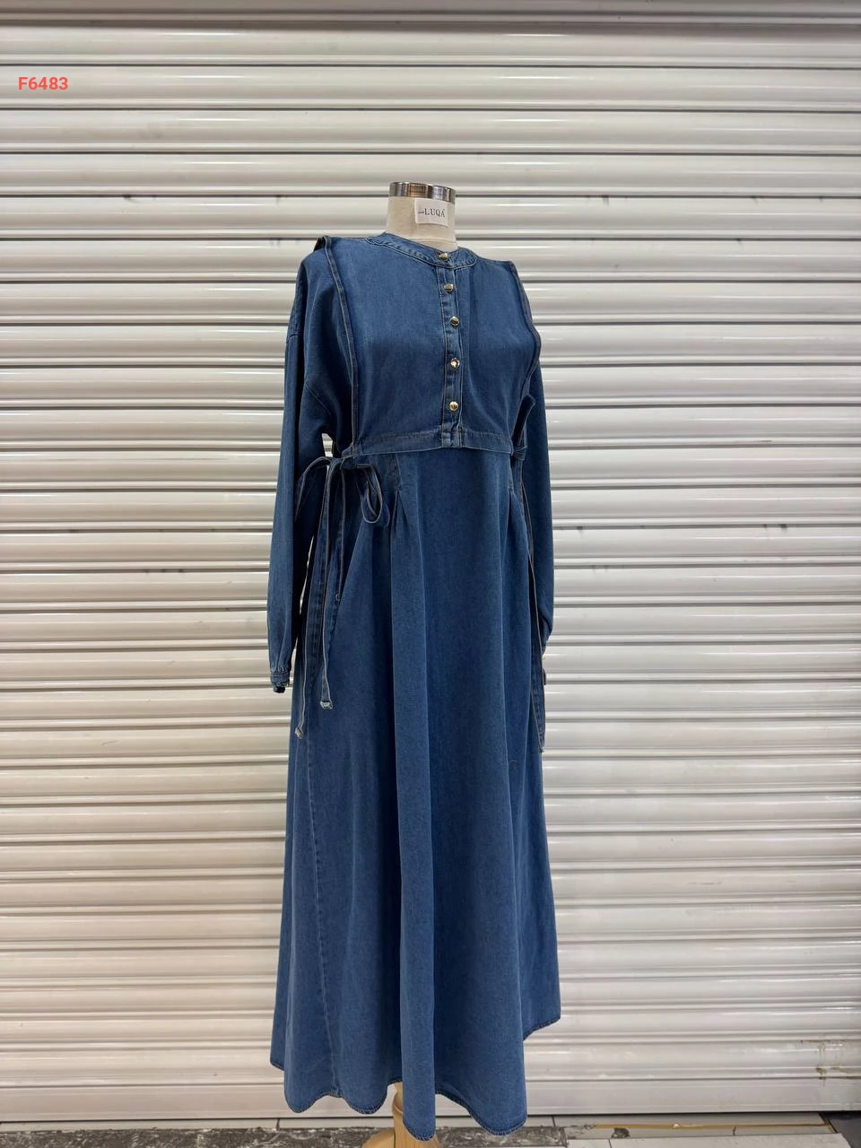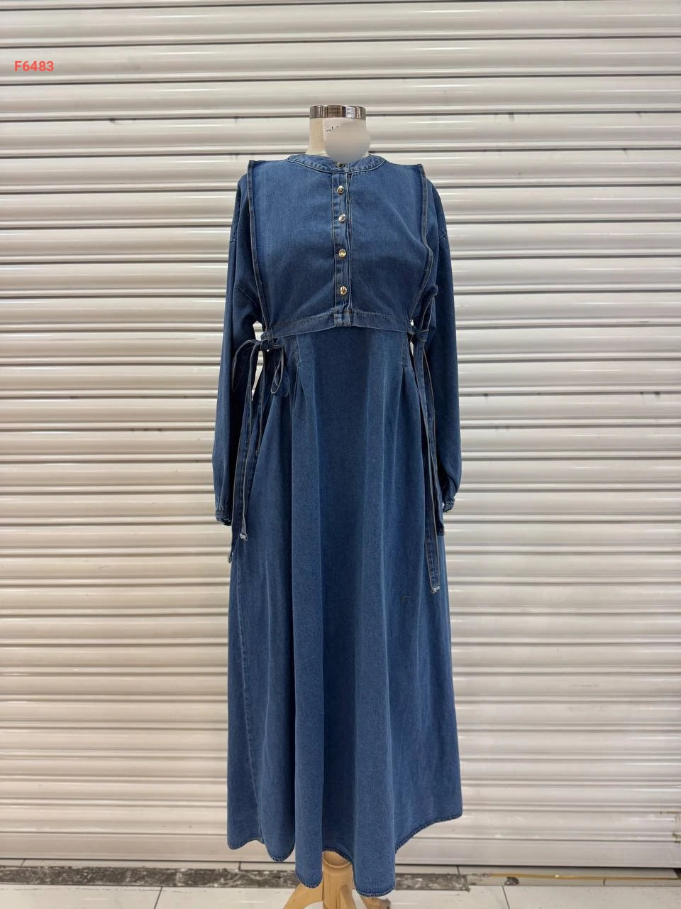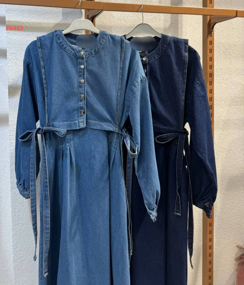 فستان جينز طويل بربطات جانبية
